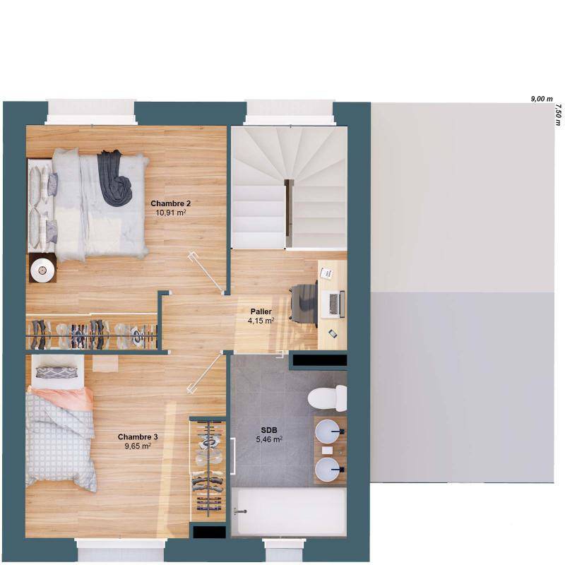 Maison neuve à construire EBENE_3CH_77_V1