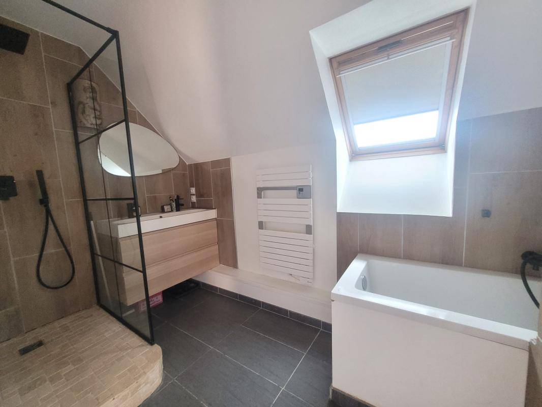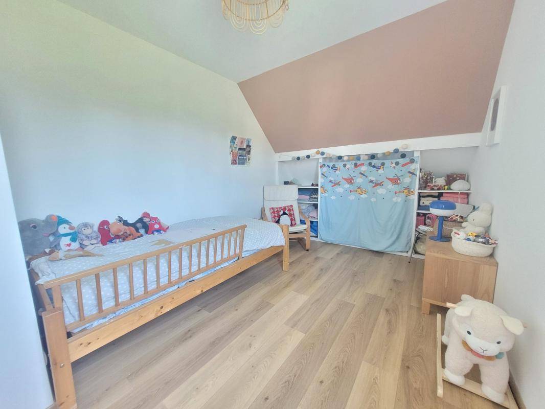 Un palier de 4 m²Trois chambres spacieuses ( 14,4 m², 13,67 m² et 12,66 m² )Une salle de bain avec douche de 6,13 m²Un WCA savoir : maison en parfait état et au goût du jour, chauffage électrique au sol au RDC, ballon de 300 L récent, DPE : D.