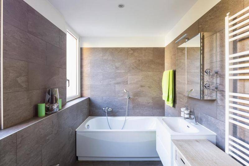 Le Séjour, généreux et lumineux s'ouvre sur une Cuisine contemporaine et donne directement accès à un joli jardin privatif, véritable havre de verdure.