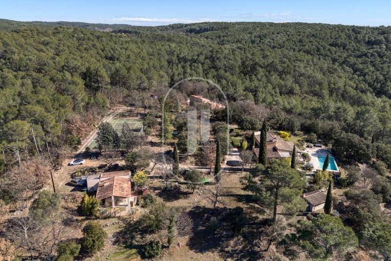 MAISONCette propriété de charme à vendre à Entrecasteaux est édifiée sur un parc dominant de 3 hectares, qui lui offre une vue panoramique sur la montagne du Gros Bessillon et sa vallée. La maison se fait oublier, enveloppée d’un manteau méditerranéen d’où jaillissent, au printemps, des fleurs aux couleurs chatoyantes. La villa a de nombreuses terrasses et espaces de détente qui permettent à chacun de s’isoler et se détendre, idéale pour une grande famille ou pour recevoir. Ce lieu bucolique est idéalement placé à 5 minutes du village d’Entrecasteaux, 15 15 minutes de Lorgues et de Cotignac.La maison développe 350 m² en deux maisons.Un grand portail en fer forgé conduit à la maison principale d’environ 250 m², essentiellement de plain-pied. On y entre par un hall d’entrée ou par le patio en verrière qui fait un agréable jardin d’hiver.Un vaste séjour avec cheminée en pierre et sa bibliothèque est agrémenté d’une grande hauteur sous plafond.Une grande cuisine séparée, équipée, offre des volumes si généreux qu’ils permettent d’y déjeuner en famille sans gêner la cuisinière. à côté, le bureau pour travailler au calme.L’espace nuit propose trois chambres, chacune a un accès par l’extérieur pour profiter des terrasses et du jardin. Elles sont agrémentées chacune d’une salle de bains sublimée par les faïences de Salernes, signées Alain Vagh.À l’étage avec accès extérieur indépendant, un appartement est idéal pour un grand enfant ou pour recevoir, il se compose d’une véranda esprit patio tout en verre comme à ciel ouvert ; Un salon, une chambre et une salle d’eau complètent ce petit nid douillet.Une maison d’amis ou de gardien d’environ 80m²; de sa terrasse, on peut profiter de la vue dominante, et du tennis qui n’est pas loin. Cet appartement T3 avec cuisine ouverte, séjour avec cheminée, profite de deux chambres et une salle d’eau. Un studio de 30 m² offre encore un couchage supplémentaire. Cette maison est aussi un lieu de paradis pour y faire de la location saisonnière en Airbnb.La piscine de 12 x 6 m avec une large plage immergée pour l’apéritif l’été, ou pour bronzer dans l’eau, le pool house en pierre, authentique, et sa cuisine d’été, les espaces de détente et les vastes terrasses autour de la villa font de ce lieu un véritable havre de paix pour les amoureux de nature et de grands espaces. Un bien d’une grande rareté.Un court de tennis et un terrain de pétanque, un garage de 42 m² et un parking extérieur complètent cet ensemble provençal au charme authentique. Elle sera le cocon d’une grande famille, ou apportera une rentabilité avec l’activité de location saisonnière. Amoureux de nature et de grands air, cette propriété incarne le rêve méridional et provençal par excellence.La maison est idéalement située au cœur de l’arrière-pays Varois réputé pour ses vignes et ses oliviers, à seulement 10 minutes des marchés provençaux et à proximité de nombreux sites emblématiques de la Provence tels que les Gorges du Verdon, Saint-Tropez et la Méditerranée. La gare TGV Les Arcs est à 30 minutes, les aéroports de Nice et de Marseille sont à un peu plus d’une heure, et l’autoroute A8 est à env. 30 minutes.Les informations sur les risques auxquels ce bien est exposé sont disponibles sur le site Géorisques : (Lien supprimé)Conformément à la réglementation en vigueur, la surface DPE de ce bien est établie sur la base d’un mesurage normé de la surface habitable. Ce mesurage peut différer de la surface totale mesurée avec précision par nos équipes commerciales.