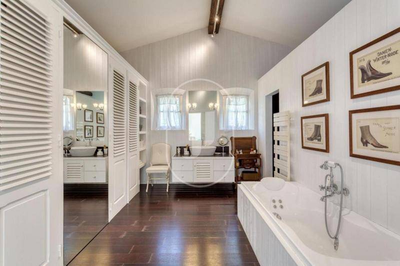 MAISONMagnifique Propriété Vue Mer à Vendre à Grimaud par Notre Agence ImmobilièreNichée dans un écrin de verdure, cette superbe maison à vendre à Grimaud ne vous laissera pas indifférent. Construite dans les années 1990 par le célèbre architecte Harry Frantzen et rénovée en 2003, cette propriété avec vue sur mer offre une surface habitable totale d’environ 380 m² répartis sur deux villas.La Maison PrincipaleLa demeure principale bénéficie d’une jolie vue mer partielle. Elle dispose d’un vaste salon traversant qui garantit une luminosité naturelle tout au long de la journée.Espaces de vie : La salle à manger s’ouvre sur une grande terrasse ombragée, idéale pour des moments inoubliables.Commodités : La cuisine et la buanderie sont modernes et entièrement équipées.Suites : Presque toutes les chambres disposent de leur propre salle de bains. Le rez-de-chaussée compte quatre chambres, dont trois en suite. À l’étage, la suite parentale dispose de son propre dressing et d’un balcon offrant une vue exceptionnelle sur le golfe de Saint-Tropez.Espaces Extérieurs et Maison d’AmisChaque espace de la propriété préserve l’intimité et la tranquillité, tant à l’intérieur qu’à l’extérieur.Détente : Dans le jardin, vous serez charmé par le pool-house et le terrain de pétanque récemment aménagé.Maison d’amis : Elle offre une grande pièce de vie avec cuisine ouverte, une belle hauteur sous plafond et une cheminée donnant sur le jardin. Elle comprend trois chambres et deux salles de bains.Loisirs : Le terrain a été optimisé avec un court de tennis, une piscine chauffée, une grande terrasse d’été et un garage.Situées dans un domaine privé au calme, tout en restant proches du centre du village, ces deux villas de style provençal sont une opportunité rare sur le marché.Propriété à vendre par l’agence immobilière de Grimaud.Grâce à notre partenariat exclusif avec Knight Frank, leader mondial de l’immobilier de prestige, Janssens Immobilier offre à chaque propriété une visibilité internationale exceptionnelle. Cette alliance renforce notre expertise locale par la puissance d’un réseau présent dans plus de 50 pays.Les informations sur les risques auxquels ce bien est exposé sont disponibles sur le site Géorisques : (Lien supprimé)Conformément à la réglementation en vigueur, la surface DPE de ce bien est établie sur la base d’un mesurage normé de la surface habitable. Ce mesurage peut différer de la surface totale mesurée avec précision par nos équipes commerciales.