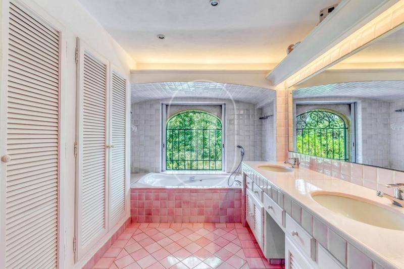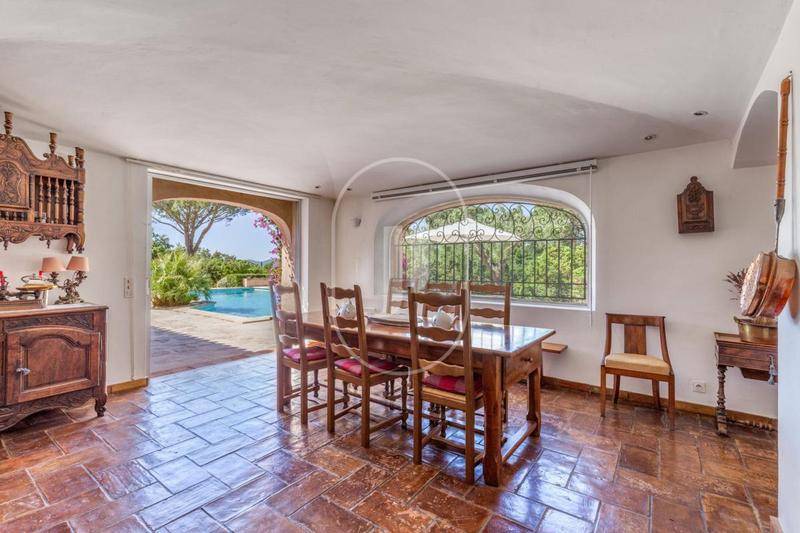 MAISONMagnifique Propriété Vue Mer à Vendre à Grimaud par Notre Agence ImmobilièreNichée dans un écrin de verdure, cette superbe maison à vendre à Grimaud ne vous laissera pas indifférent. Construite dans les années 1990 par le célèbre architecte Harry Frantzen et rénovée en 2003, cette propriété avec vue sur mer offre une surface habitable totale d’environ 380 m² répartis sur deux villas.La Maison PrincipaleLa demeure principale bénéficie d’une jolie vue mer partielle. Elle dispose d’un vaste salon traversant qui garantit une luminosité naturelle tout au long de la journée.Espaces de vie : La salle à manger s’ouvre sur une grande terrasse ombragée, idéale pour des moments inoubliables.Commodités : La cuisine et la buanderie sont modernes et entièrement équipées.Suites : Presque toutes les chambres disposent de leur propre salle de bains. Le rez-de-chaussée compte quatre chambres, dont trois en suite. À l’étage, la suite parentale dispose de son propre dressing et d’un balcon offrant une vue exceptionnelle sur le golfe de Saint-Tropez.Espaces Extérieurs et Maison d’AmisChaque espace de la propriété préserve l’intimité et la tranquillité, tant à l’intérieur qu’à l’extérieur.Détente : Dans le jardin, vous serez charmé par le pool-house et le terrain de pétanque récemment aménagé.Maison d’amis : Elle offre une grande pièce de vie avec cuisine ouverte, une belle hauteur sous plafond et une cheminée donnant sur le jardin. Elle comprend trois chambres et deux salles de bains.Loisirs : Le terrain a été optimisé avec un court de tennis, une piscine chauffée, une grande terrasse d’été et un garage.Situées dans un domaine privé au calme, tout en restant proches du centre du village, ces deux villas de style provençal sont une opportunité rare sur le marché.Propriété à vendre par l’agence immobilière de Grimaud.Grâce à notre partenariat exclusif avec Knight Frank, leader mondial de l’immobilier de prestige, Janssens Immobilier offre à chaque propriété une visibilité internationale exceptionnelle. Cette alliance renforce notre expertise locale par la puissance d’un réseau présent dans plus de 50 pays.Les informations sur les risques auxquels ce bien est exposé sont disponibles sur le site Géorisques : (Lien supprimé)Conformément à la réglementation en vigueur, la surface DPE de ce bien est établie sur la base d’un mesurage normé de la surface habitable. Ce mesurage peut différer de la surface totale mesurée avec précision par nos équipes commerciales.
