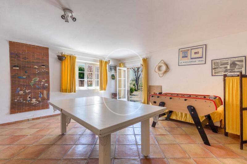 MAISONNichée dans un environnement champêtre, au calme absolu et sans vis-à-vis, cette authentique bastide en pierre du XVIIIᵉ siècle, rénovée à la fin des années 80, offre un cadre de vie rare à seulement quelques minutes de Cogolin.D’une surface totale de bâti d’environ 247 m² au sol et édifiée sur deux niveaux, elle se compose en rez-de-jardin d’un studio indépendant idéal pour recevoir famille et amis, une cave, un garage de 34m² ainsi qu’une buanderie/ espace de rangement/technique comprenant un système de filtration pour pouvoir consommer l’eau du forage.À l’étage, une agréable cuisine semi-ouverte, une lumineuse pièce de vie traversante agrémentée d’une belle cheminée et d’une généreuse hauteur sous plafond, deux chambres se partageant une salle d’eau ainsi qu’une chambre de maître.À l’extérieur, le charme opère immédiatement, de belles terrasses ombragées par une glycine invitent aux repas d’été, une piscine hors-sol, un carport, de nombreuses places de stationnement, un forage ainsi qu’un système d’arrosage automatique complètent l’ensemble.Implantée sur un terrain de plus de 8 800 m², la propriété bénéficie d’une jolie vue sur les collines environnantes.Des travaux de remise au goût du jour permettront de révéler tout le potentiel de cette demeure de caractère.Un bien rare à la vente, proposé par l’agence immobilière de Grimaud.Grâce à notre partenariat exclusif avec Knight Frank, leader mondial de l’immobilier de prestige, Janssens Immobilier offre à chaque propriété une visibilité internationale exceptionnelle. Cette alliance renforce notre expertise locale par la puissance d’un réseau présent dans plus de 50 pays.Les informations sur les risques auxquels ce bien est exposé sont disponibles sur le site Géorisques : (Lien supprimé)Conformément à la réglementation en vigueur, la surface DPE de ce bien est établie sur la base d’un mesurage normé de la surface habitable. Ce mesurage peut différer de la surface totale mesurée avec précision par nos équipes commerciales.