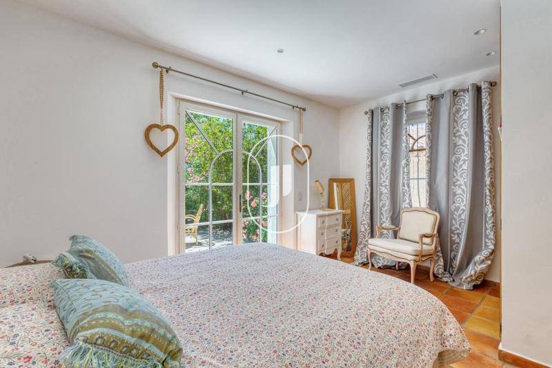 MAISONNichée dans un environnement champêtre, au calme absolu et sans vis-à-vis, cette authentique bastide en pierre du XVIIIᵉ siècle, rénovée à la fin des années 80, offre un cadre de vie rare à seulement quelques minutes de Cogolin.D’une surface totale de bâti d’environ 247 m² au sol et édifiée sur deux niveaux, elle se compose en rez-de-jardin d’un studio indépendant idéal pour recevoir famille et amis, une cave, un garage de 34m² ainsi qu’une buanderie/ espace de rangement/technique comprenant un système de filtration pour pouvoir consommer l’eau du forage.À l’étage, une agréable cuisine semi-ouverte, une lumineuse pièce de vie traversante agrémentée d’une belle cheminée et d’une généreuse hauteur sous plafond, deux chambres se partageant une salle d’eau ainsi qu’une chambre de maître.À l’extérieur, le charme opère immédiatement, de belles terrasses ombragées par une glycine invitent aux repas d’été, une piscine hors-sol, un carport, de nombreuses places de stationnement, un forage ainsi qu’un système d’arrosage automatique complètent l’ensemble.Implantée sur un terrain de plus de 8 800 m², la propriété bénéficie d’une jolie vue sur les collines environnantes.Des travaux de remise au goût du jour permettront de révéler tout le potentiel de cette demeure de caractère.Un bien rare à la vente, proposé par l’agence immobilière de Grimaud.Grâce à notre partenariat exclusif avec Knight Frank, leader mondial de l’immobilier de prestige, Janssens Immobilier offre à chaque propriété une visibilité internationale exceptionnelle. Cette alliance renforce notre expertise locale par la puissance d’un réseau présent dans plus de 50 pays.Les informations sur les risques auxquels ce bien est exposé sont disponibles sur le site Géorisques : (Lien supprimé)Conformément à la réglementation en vigueur, la surface DPE de ce bien est établie sur la base d’un mesurage normé de la surface habitable. Ce mesurage peut différer de la surface totale mesurée avec précision par nos équipes commerciales.