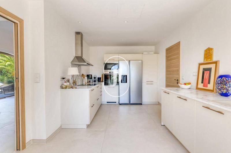 MAISONVilla moderne avec piscine et plage privée en vente à GassinCette propriété vous fait profiter du privilège exceptionnel d’avoir sa propre plage nichée dans la verdure à l’abri de tout regards et d’un garage à bateau. La villa d’environ 170m² édifiée sur deux niveaux à été rénovée en 2019. Toutes les pièces de la maison font face à la mer et se composent comme suit : une lumineuse pièce de vie avec cheminée, une cuisine ouverte entièrement équipée, un grand cellier et une première suite avec salle de bains et dressing, le tout donnant sur une belle terrasse aménagée avec cuisine extérieure. À l’étage inférieur, trois chambres avec salles d’eau profitant d’un accès direct à une seconde terrasse. Le terrain parfaitement arboré bénéficie d’une sublime piscine à débordement avec plage en teck ainsi que d’un espace parking pouvant accueillir trois véhicules. Produit exceptionnel unique à la vente dans notre agence immobilière de Saint-Tropez.La position face au Golfe de Saint-Tropez permet de bénéficier d’une superbe vue sur la mer, les collines du massif des Maures et jusqu’aux Alpes du Sud enneigés en hiver. En été, vous pourrez contempler depuis votre salon les plus beaux yachts du monde jeter l’ancre dans la baie ou encore suivre les courses de bateaux à voiles comme Sail GP ou Les Voiles de Saint-Tropez. Les plages de la Bouillabaisse et de la Moune se trouvent à quelques minutes et grâce à la piste cyclable devant la propriété, vous accéder facilement aux communes environnantes.La commune de Gassin se situe au centre du Golfe de Saint-Tropez et bénéficie d’un accès facile à Port-Grimaud, La Croix Valmer, aux plages de Pampelonne à Ramatuelle et au fameux village de Saint-Tropez. Gassin vient de confirmer son classement parmi les « Plus beaux villages de France ».Propriété à vendre par l’agence immobilière de Saint-Tropez / Ramatuelle.Grâce à notre partenariat exclusif avec Knight Frank, leader mondial de l’immobilier de prestige, Janssens Immobilier offre à chaque propriété une visibilité internationale exceptionnelle.Cette alliance renforce notre expertise locale par la puissance d’un réseau présent dans plus de 50 pays.Les informations sur les risques auxquels ce bien est exposé sont disponibles sur le site Géorisques : (Lien supprimé)Conformément à la réglementation en vigueur, la surface DPE de ce bien est établie sur la base d’un mesurage normé de la surface habitable. Ce mesurage peut différer de la surface totale mesurée avec précision par nos équipes commerciales.