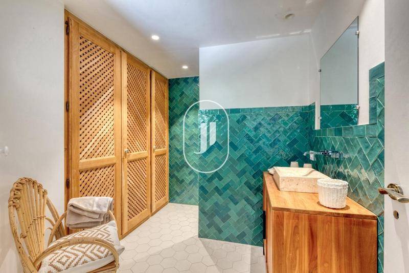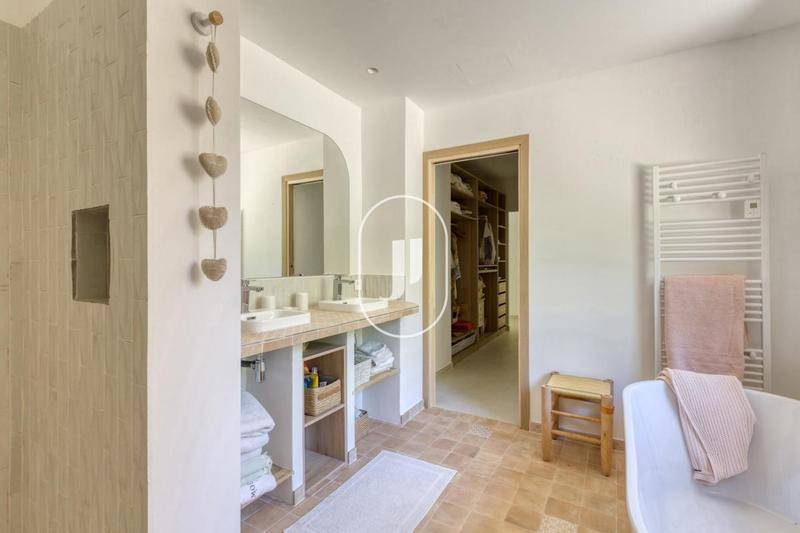 MAISONMagnifique Propriété Vue Mer à Vendre à Grimaud par Notre Agence ImmobilièreNichée dans un écrin de verdure, cette superbe maison à vendre à Grimaud ne vous laissera pas indifférent. Construite dans les années 1990 par le célèbre architecte Harry Frantzen et rénovée en 2003, cette propriété avec vue sur mer offre une surface habitable totale d’environ 380 m² répartis sur deux villas.La Maison PrincipaleLa demeure principale bénéficie d’une jolie vue mer partielle. Elle dispose d’un vaste salon traversant qui garantit une luminosité naturelle tout au long de la journée.Espaces de vie : La salle à manger s’ouvre sur une grande terrasse ombragée, idéale pour des moments inoubliables.Commodités : La cuisine et la buanderie sont modernes et entièrement équipées.Suites : Presque toutes les chambres disposent de leur propre salle de bains. Le rez-de-chaussée compte quatre chambres, dont trois en suite. À l’étage, la suite parentale dispose de son propre dressing et d’un balcon offrant une vue exceptionnelle sur le golfe de Saint-Tropez.Espaces Extérieurs et Maison d’AmisChaque espace de la propriété préserve l’intimité et la tranquillité, tant à l’intérieur qu’à l’extérieur.Détente : Dans le jardin, vous serez charmé par le pool-house et le terrain de pétanque récemment aménagé.Maison d’amis : Elle offre une grande pièce de vie avec cuisine ouverte, une belle hauteur sous plafond et une cheminée donnant sur le jardin. Elle comprend trois chambres et deux salles de bains.Loisirs : Le terrain a été optimisé avec un court de tennis, une piscine chauffée, une grande terrasse d’été et un garage.Situées dans un domaine privé au calme, tout en restant proches du centre du village, ces deux villas de style provençal sont une opportunité rare sur le marché.Propriété à vendre par l’agence immobilière de Grimaud.Grâce à notre partenariat exclusif avec Knight Frank, leader mondial de l’immobilier de prestige, Janssens Immobilier offre à chaque propriété une visibilité internationale exceptionnelle. Cette alliance renforce notre expertise locale par la puissance d’un réseau présent dans plus de 50 pays.Les informations sur les risques auxquels ce bien est exposé sont disponibles sur le site Géorisques : (Lien supprimé)Conformément à la réglementation en vigueur, la surface DPE de ce bien est établie sur la base d’un mesurage normé de la surface habitable. Ce mesurage peut différer de la surface totale mesurée avec précision par nos équipes commerciales.