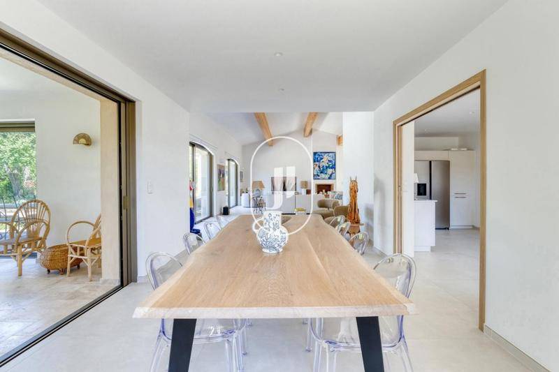 MAISONSituée dans le golfe de Saint-Tropez, à quelques minutes du village du Plan-de-la-Tour, cette propriété d’exception à vendre signée par l’architecte D.P.L.G. Robin Brasseur déploie plus de 400 m² d’architecture contemporaine au cœur d’un domaine préservé de plus de deux hectares. Entourée d’oliviers centenaires, de pins et de vignes, elle incarne un art de vivre en harmonie avec la nature, entre force minérale et douceur végétale.Conçue comme une œuvre d’équilibre, la villa s’organise en U autour d’un bassin miroir de 100 m² orienté plein sud. Les larges baies à galandage effacent les frontières entre intérieur et extérieur, prolongeant les espaces de vie vers de vastes terrasses ombragées de pins parasols. L’ensemble, baigné de lumière, a été pensé pour accueillir jusqu’à seize convives dans un confort absolu.Au centre, une vaste pièce de réception s’élève sous un plafond cathédrale, dominée par une cheminée monumentale et ouverte sur la piscine et les jardins. En continuité, la cuisine Boffi, aux lignes épurées et finitions granit, s’équipe de matériel Gaggenau en double et d’un office extérieur conçu pour un chef.Le rez-de-chaussée offre quatre chambres, chacune avec salle d’eau et vue sur la nature. À l’étage, une mezzanine lumineuse accueille un vaste bureau et dressing. La suite parentale : avec son dressing, vestibule, salle de bain mosaïquée Bisazza et terrasse privée surplombant la piscine miroir d’eau. Au rez de jardin, deux autres chambres indépendantes, avec salle d’eau attenante, garantissent autonomie et intimité à leurs hôtes.Les espaces extérieurs invitent à la détente : terrasses, pool house orné d’une fresque inspirée du sport automobile, home cinéma, salle de jeux, salle de sport ouverte sur le bassin avec sauna, aire de jeux, court de tennis et cabane perchée dans la pinède.Dotée d’équipements techniques haut de gamme, la propriété allie luxe et performance : chauffage et climatisation géothermiques, panneaux solaires, double forage, aspiration centralisée, trappes à linge, système de récupération des cendres et local technique en sous-sol. Une cave de 25 m², un garage de 200 m² pouvant abriter six véhicules, ainsi que plusieurs stationnements complètent l’ensemble.Chaque détail révèle une exigence de perfection : matériaux nobles, volumes maîtrisés, lumière omniprésente. La décoration, contemporaine et chaleureuse, conjugue teintes naturelles, textures élégantes et mobilier sur mesure prolongeant cette harmonie raffinée.À seulement 18 km de Saint-Tropez et une heure de l’aéroport de Nice, cette œuvre architecturale incarne la quintessence du luxe discret — un lieu d’émotion, de beauté et de paix.Grâce à notre partenariat exclusif avec Knight Frank, leader mondial de l’immobilier de prestige, Janssens Immobilier offre à chaque propriété une visibilité internationale exceptionnelle. Cette alliance renforce notre expertise locale par la puissance d’un réseau présent dans plus de 50 pays.Les informations sur les risques auxquels ce bien est exposé sont disponibles sur le site Géorisques : www.georisques.gouv.frConformément à la réglementation, la surface DPE repose sur un mesurage normé de la surface habitable, susceptible de différer du mesurage total effectué par nos équipes commerciales.