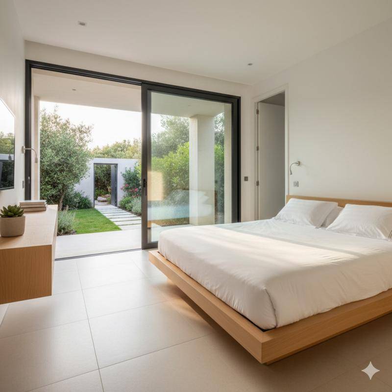 Chaque chambre a été conçue pour offrir calme, intimité et confort hôtelier, avec des vues dégagées sur le jardin ou la mer.