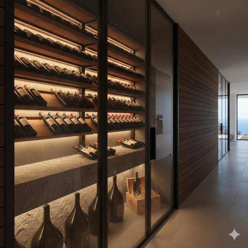 Les larges baies vitrées effacent la frontière entre intérieur et extérieur, offrant une vue panoramique sur la Méditerranée et une lumière omniprésente tout au long de la journée.
