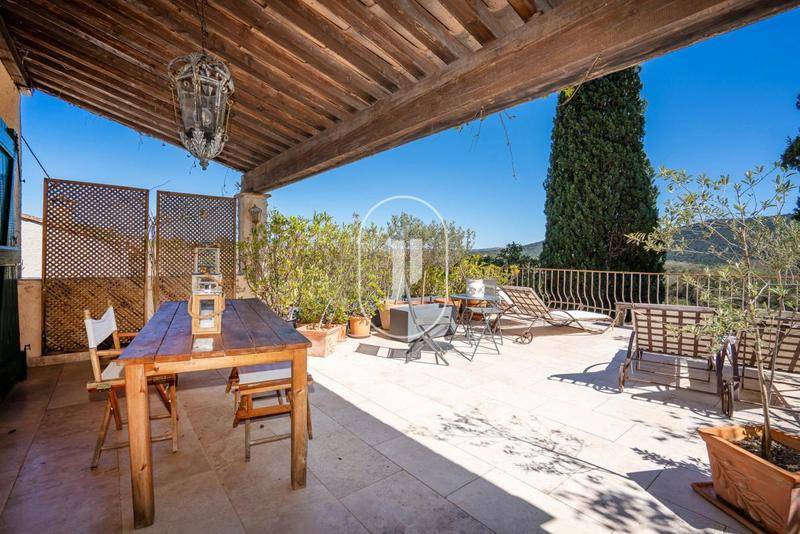 MAISONNichée dans un environnement paisible et boisé, à proximité d’un prestigieux domaine à Grimaud, cette charmante maison provençale d’une superficie totale d’environ 150 m² (comprenant l’habitation principale et un cabanon) est proposée à la vente. Son terrain de 3 500 m² offre un cadre enchanteur, parfait pour un projet de rénovation.S’étendant sur deux niveaux et entourée de verdure, cette propriété séduit par son calme absolu et son aperçu sur la mer.Au rez-de-chaussée, une entrée lumineuse vous conduit vers un salon-salle à manger convivial, agrémenté d’une cheminée, parfaite pour des moments chaleureux. La cuisine séparée ajoute une touche fonctionnelle. Ce niveau comprend également trois chambres confortables, deux salles de bains et un WC invité.Au rez-de-jardin, vous trouverez une chambre avec salle d’eau attenante, garantissant une intimité appréciable. À l’extérieur, la propriété dévoile un véritable havre de paix, avec trois places de stationnement, une vaste terrasse ombragée idéale pour les repas en plein air, un abri voiture, un garage, ainsi qu’un pool house et une piscine, parfaits pour se détendre sous le soleil.Un charmant cabanon d’environ 45 m² complète ce bien, comprenant un séjour avec kitchenette, deux chambres, un WC et une salle d’eau, offrant un espace supplémentaire idéal pour vos invités.Cette maison provençale, rare à la vente, offre une vue mer et crée ainsi un cadre idyllique où calme et beauté se rencontrent, prête à accueillir votre projet de rêve.Grâce à notre partenariat exclusif avec Knight Frank, leader mondial de l’immobilier de prestige, Janssens Immobilier offre à chaque propriété une visibilité internationale exceptionnelle. Cette alliance renforce notre expertise locale par la puissance d’un réseau présent dans plus de 50 pays.Les informations sur les risques auxquels ce bien est exposé sont disponibles sur le site Géorisques : (Lien supprimé)Conformément à la réglementation en vigueur, la surface DPE de ce bien est établie sur la base d’un mesurage normé de la surface habitable. Ce mesurage peut différer de la surface totale mesurée avec précision par nos équipes commerciales.