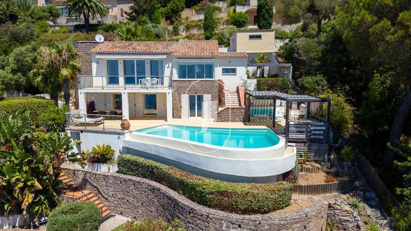 MAISONVilla avec vue mer et piscine à vendre aux Issambres par notre agence immobilière Janssens immobilier de Sainte-Maxime.Nous vous invitons à découvrir cette villa en position dominante aux Issambres, offrant une vue sur la mer et les collines environnantes.Exposée sud-ouest, cette propriété principalement de plain-pied propose des espaces de vie lumineux et fonctionnels, parfaits pour une vie quotidienne agréable.La villa, entièrement climatisée offre un séjour généreux et accueillant ouvrant sur une grande terrasse baignée de soleil. La cuisine équipée et son arrière-cuisine, répondront à toutes vos attentes en matière de praticité et de confort.Une grande véranda avec vue sur la piscine crée un espace de vie convivial et lumineux, idéal pour partager des repas en famille ou entre amis.L’espace nuit comprend quatre chambres avec placards, dont une suite parentale avec salle de bain, dressing et WC.En complément, une mezzanine pouvant servir de chambre d’appoint ou de bureau.À l’extérieur, le grand terrain paysagé de 4000 m² sans aucun vis-à-vis, facile d’entretien, est parfait pour profiter du plein air.La superbe piscine à débordement, entourée d’une grande plage, invite à des moments de détente ensoleillés.Un garage double, un atelier pour vos projets de bricolage, plusieurs caves pour le stockage et de nombreuses places de stationnement complètent les atouts de cette propriété.Villa à vendre par notre agence immobilière Janssens immobilier de Sainte-Maxime.Grâce à notre partenariat exclusif avec Knight Frank, leader mondial de l’immobilier de prestige, Janssens Immobilier offre à chaque propriété une visibilité internationale exceptionnelle. Cette alliance renforce notre expertise locale par la puissance d’un réseau présent dans plus de 50 pays.Les informations sur les risques auxquels ce bien est exposé sont disponibles sur le site Géorisques : (Lien supprimé)Conformément à la réglementation en vigueur, la surface DPE de ce bien est établie sur la base d’un mesurage normé de la surface habitable. Ce mesurage peut différer de la surface totale mesurée avec précision par nos équipes commerciales.