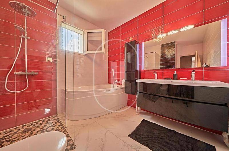 MAISONDécouvrez cette magnifique villa rénovée en 2022 dans un style néo-provençal, nichée en position dominante, offrant des vues panoramiques à couper le souffle sur la mer et tout le littoral environnant.Chaque détail de cette propriété a été pensé pour allier élégance, confort moderne et charme provençal. Entièrement transformée grâce à des rénovations d’envergure, la villa dévoile désormais de vastes espaces lumineux.L’accès à la propriété se fait par deux points distincts : en contrebas, un portail électrique s’ouvre sur un grand garage, tandis qu’en haut, un portail manuelle mène à une aire de stationnement pouvant accueillir plusieurs véhicules, facilitant ainsi l’accès direct à l’entrée principale.Avec ses sept chambres spacieuses et ses six salles de bains ou douches, la villa est idéale pour accueillir famille et amis dans un cadre luxueux. Le vaste salon, baigné de lumière naturelle, s’ouvre directement sur une grande terrasse où il fait bon vivre. Toutes les pièces de la maison offre une vue imprenable sur la mer La salle à manger, attenante à la cuisine entièrement équipée, s’ouvre sur une terrasse, parfaite pour savourer les petits-déjeuners.Cette demeure dispose d’une superbe piscine à débordement, au sel et complètement neuve avec installation technique de dernière génération, parfaite pour se détendre tout en admirant l’horizon marin.Autour de la piscine vaste terrasses avec cuisine d’été équipée en eau chaude et électricité et un boulodrome pour profiter de ce jeu typiquement Français tout en ayant une magnifique vue mer. Parfaitement équipée pour votre confort, la villa bénéficie de la climatisation réversible, d’une cave à vin pour les amateurs de grands crus, ainsi que d’une grande buanderie. Un grand garage pour mettre à abri votre voiture ou bateau de taille raisonable.Villa à vendre par l’agence immobilière Janssens immobilier de Sainte-Maxime.Les informations sur les risques auxquels ce bien est exposé sont disponibles sur le site Géorisques : (Lien supprimé)Conformément à la réglementation en vigueur, la surface DPE de ce bien est établie sur la base d’un mesurage normé de la surface habitable. Ce mesurage peut différer de la surface totale mesurée avec précision par nos équipes commerciales.