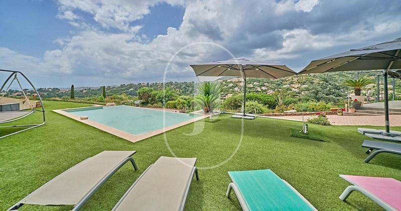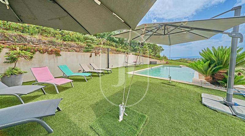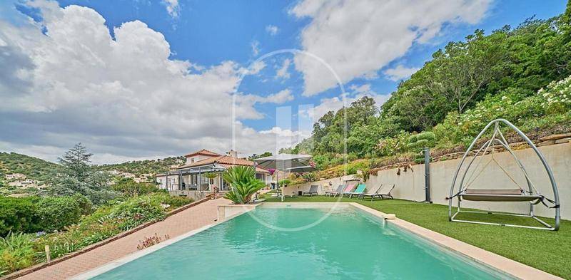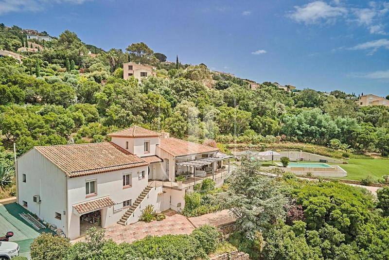 MAISONVilla avec vue mer et piscine à vendre aux Issambres par notre agence immobilière Janssens immobilier de Sainte-Maxime.Nous vous invitons à découvrir cette villa en position dominante aux Issambres, offrant une vue sur la mer et les collines environnantes.Exposée sud-ouest, cette propriété principalement de plain-pied propose des espaces de vie lumineux et fonctionnels, parfaits pour une vie quotidienne agréable.La villa, entièrement climatisée offre un séjour généreux et accueillant ouvrant sur une grande terrasse baignée de soleil. La cuisine équipée et son arrière-cuisine, répondront à toutes vos attentes en matière de praticité et de confort.Une grande véranda avec vue sur la piscine crée un espace de vie convivial et lumineux, idéal pour partager des repas en famille ou entre amis.L’espace nuit comprend quatre chambres avec placards, dont une suite parentale avec salle de bain, dressing et WC.En complément, une mezzanine pouvant servir de chambre d’appoint ou de bureau.À l’extérieur, le grand terrain paysagé de 4000 m² sans aucun vis-à-vis, facile d’entretien, est parfait pour profiter du plein air.La superbe piscine à débordement, entourée d’une grande plage, invite à des moments de détente ensoleillés.Un garage double, un atelier pour vos projets de bricolage, plusieurs caves pour le stockage et de nombreuses places de stationnement complètent les atouts de cette propriété.Villa à vendre par notre agence immobilière Janssens immobilier de Sainte-Maxime.Grâce à notre partenariat exclusif avec Knight Frank, leader mondial de l’immobilier de prestige, Janssens Immobilier offre à chaque propriété une visibilité internationale exceptionnelle. Cette alliance renforce notre expertise locale par la puissance d’un réseau présent dans plus de 50 pays.Les informations sur les risques auxquels ce bien est exposé sont disponibles sur le site Géorisques : (Lien supprimé)Conformément à la réglementation en vigueur, la surface DPE de ce bien est établie sur la base d’un mesurage normé de la surface habitable. Ce mesurage peut différer de la surface totale mesurée avec précision par nos équipes commerciales.