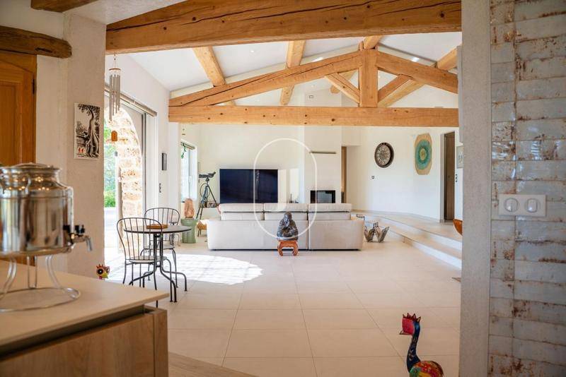 MAISONPropriété d’exception à vendre au cœur du Thoronet.Nichée dans un écrin de verdure, cette propriété d’exception classée AA, offre un cadre de vie paisible et raffiné. En parfaite harmonie avec la nature environnante, elle séduit par son atmosphère sereine et la qualité de ses prestations. Chaque détail a été pensé pour allier élégance, confort et fonctionnalité. Sa vue sur les Maures est un atout exceptionnel.Le rez-de-chaussée, baigné de lumière, s’étend sur plus de 100 m² dédiés à l’art de vivre. Une entrée spacieuse mène vers une cuisine contemporaine entièrement équipée, prolongée par une salle à manger conviviale et un vaste séjour ouvert sur la terrasse. Celle-ci s’étire vers une superbe piscine, créant une transition fluide entre intérieur et extérieur. Une arrière-cuisine, une buanderie et un accès direct au garage à motos complètent l’ensemble.L’espace nuit du rez-de-chaussée accueille une suite parentale de plain-pied tournée vers la piscine, avec dressing et salle de bains privative. Une seconde chambre et une autre suite indépendante offrent intimité et confort.À l’étage, trois chambres lumineuses prolongent le raffinement des lieux. L’une d’elles s’ouvre sur un balcon offrant une vue imprenable sur la campagne environnante. Une salle de bains et des toilettes complètent ce niveau, baigné d’une atmosphère paisible et élégante.Les matériaux de qualité et le soin apporté à la construction témoignent d’un savoir-faire irréprochable. À l’extérieur, la vaste terrasse domine une piscine à débordement de 14 x 8,5 mètres, dont la plage prolonge l’horizon dans une ambiance de pure détente. Le pool house climatisé, véritable salon d’été, invite à la convivialité en famille ou entre amis.Un double garage vient parfaire cet ensemble, offrant un espace supplémentaire de stationnement ou de rangement. Cette demeure allie à merveille charme provençal et confort contemporain, pour une expérience de vie unique au cœur du Var.Le village provençal du Thoronet est niché entre forêts de chênes et collines ensoleillées. Il est surtout célèbre pour son abbaye cistercienne du XIIᵉ siècle, joyau d’architecture romane. Calme et authentique, le village offre un charme intemporel typique du cœur de la Provence.Ce bien est proposé par notre bureau de Grimaud.Grâce à notre partenariat exclusif avec Knight Frank, leader mondial de l’immobilier de prestige, Janssens Immobilier offre à chaque propriété une visibilité internationale exceptionnelle. Cette alliance renforce notre expertise locale par la puissance d’un réseau présent dans plus de 50 pays.Les informations sur les risques auxquels ce bien est exposé sont disponibles sur le site Géorisques : (Lien supprimé)Conformément à la réglementation en vigueur, la surface DPE de ce bien est établie sur la base d’un mesurage normé de la surface habitable. Ce mesurage peut différer de la surface totale mesurée avec précision par nos équipes commerciales.