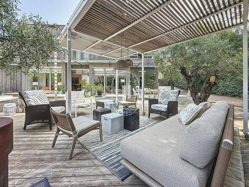 Les espaces intérieurs ont été pensés pour allier confort et convivialité, avec au rez-de-chaussée une entrée avec vestiaire et toilettes d'invités, une pièce de vie de 80 m² avec une belle hauteur sous plafond, ouverte sur une terrasse ensoleillée de 170 m² et l'espace piscine, ainsi qu'une cuisine élégante et fonctionnelle, entièrement ouverte sur le séjour.