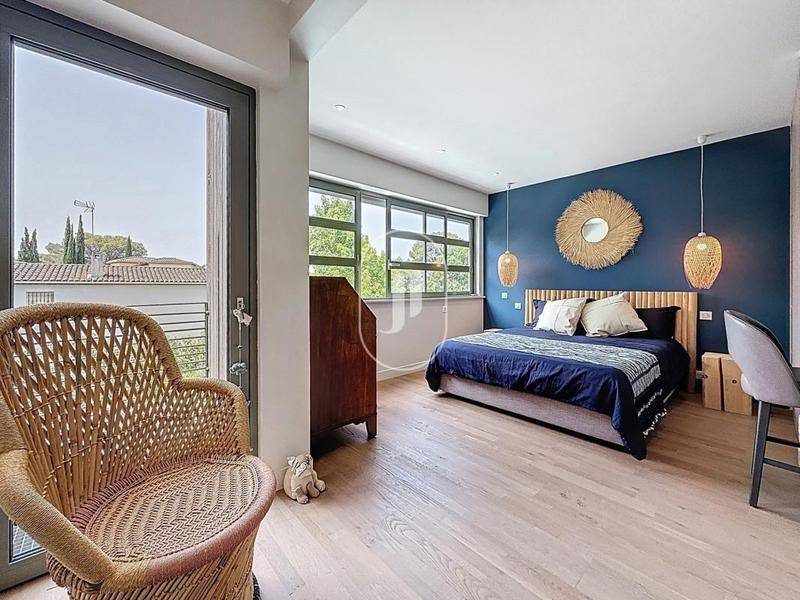 MAISONVilla alliant élégance architecturale et raffinement des matériaux. Cette demeure d’exception est nichée au cœur du quartier de Valescure, à Saint-Raphaël, dans un environnement calme et verdoyant.Elle séduit dès les premiers instants par sa luminosité omniprésente, ses volumes généreux et son atmosphère unique. L’architecture contemporaine, atypique et résolument élégante, offre un cadre de vie agréable, sublimé par une exposition plein sud qui baigne chaque pièce de lumière naturelle.Les espaces intérieurs ont été pensés pour allier confort et convivialité, avec au rez-de-chaussée une entrée avec vestiaire et toilettes d’invités, une pièce de vie de 80 m² avec une belle hauteur sous plafond, ouverte sur une terrasse ensoleillée de 170 m² et l’espace piscine, ainsi qu’une cuisine élégante et fonctionnelle, entièrement ouverte sur le séjour.À l’étage, quatre chambres spacieuses se partagent deux salles d’eau avec toilettes, complétées par un dégagement avec toilettes indépendantes.Un sous-sol de 67 m² abrite une buanderie, une cave à vin et un espace atelier ou débarras.Entièrement rénovée il y a moins de cinq ans, la villa bénéficie de matériaux nobles et durables, offrant à la fois confort, pérennité et esthétisme. Les extérieurs, conçus pour la détente et la facilité d’entretien, comprennent un jardin paysager en limite d’espaces verts, de grandes terrasses conviviales et un espace piscine baigné de soleil.Un bien d’exception, rare sur le marché, idéal pour les amateurs de modernité, de prestige et de tranquillité au cœur de Valescure.Villa à vendre par l’agence immobilière Janssens immobilier de Sainte-Maxime.Grâce à notre partenariat exclusif avec Knight Frank, leader mondial de l’immobilier de prestige, Janssens Immobilier offre à chaque propriété une visibilité internationale exceptionnelle.Cette alliance renforce notre expertise locale par la puissance d’un réseau présent dans plus de 50 pays.Les informations sur les risques auxquels ce bien est exposé sont disponibles sur le site Géorisques : (Lien supprimé)Conformément à la réglementation en vigueur, la surface DPE de ce bien est établie sur la base d’un mesurage normé de la surface habitable. Ce mesurage peut différer de la surface totale mesurée avec précision par nos équipes commerciales.