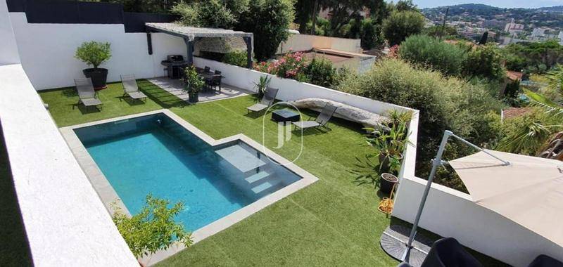 MAISONVilla à pied du centre-ville en vente par l’agence immobilière Janssens immobilier de Sainte-Maxime.Dans un quartier résidentiel, à seulement 5 minutes à pied de la plage du centre-ville, découvrez cette maison individuelle, bénéficiant de la solidité et de la qualité de construction des années 70.Entièrement rénovée avec des matériaux de qualité à l’intérieur, la villa offre des prestations modernes tels que la climatisation réversible, robinetterie encastrée, dalles modernes au sol, et alarme, ce qui la rend immédiatement habitable.Profitant d’un jardin plat, traversant, arboré et piscinable (certificat d’urbanisme opérationnel positif pour une piscine de 5 X 10 m), cette demeure bénéficie d’un environnement calme et recherché. D’une surface d’environ 150 m² répartis sur deux niveaux, cette villa propose de plain-pied: un garage, une buanderie, ainsi qu’un appartement deux pièces comprenant une cuisine et une chambre.À l’étage, un séjour lumineux avec triple exposition et une superbe cuisine ouverte donnent accès à une terrasse plein sud. Un bureau, deux belles chambres avec placards et balcon, une salle d’eau et des WC indépendants complètent ce niveau. Les deux niveaux sont reliés par un escalier interne ainsi que par un accès extérieur.La propriété inclut un parking privé en plus du garage, avec la possibilité de créer des places supplémentaires. Un patio d’environ 50m², situé en rez-de-jardin, offre un espace idéal pour installer des salons de jardin et un coin barbecue, à l’abri des rayons du soleil durant la saison estivale.Le bien se situe hors copropriété et hors ASL, ce qui permet une liberté plus appréciable en cas de construction de piscine et surtout une économie non négligeable.Villa à vendre par l’agence immobilière Janssens immobilier de Sainte-Maxime.Grâce à notre partenariat exclusif avec Knight Frank, leader mondial de l’immobilier de prestige, Janssens Immobilier offre à chaque propriété une visibilité internationale exceptionnelle. Cette alliance renforce notre expertise locale par la puissance d’un réseau présent dans plus de 50 pays.Les informations sur les risques auxquels ce bien est exposé sont disponibles sur le site Géorisques : (Lien supprimé)Conformément à la réglementation en vigueur, la surface DPE de ce bien est établie sur la base d’un mesurage normé de la surface habitable. Ce mesurage peut différer de la surface totale mesurée avec précision par nos équipes commerciales.