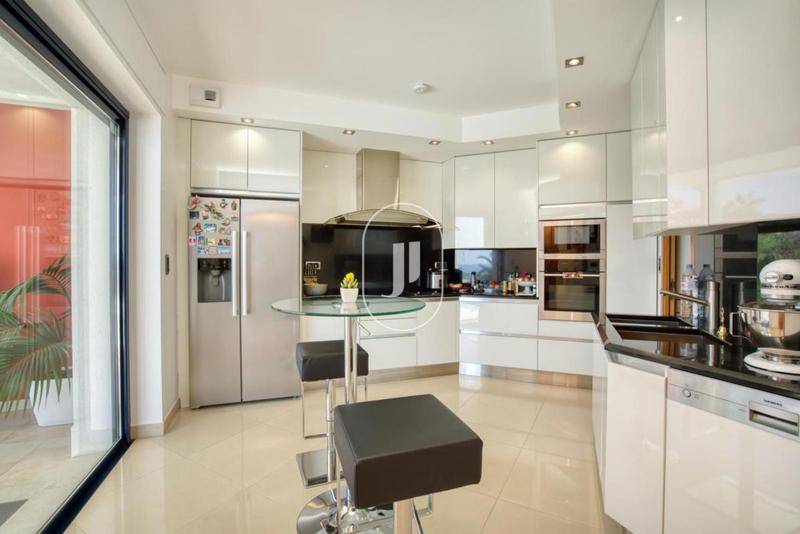Son jardin est agrémenté d'une magnifique piscine à débordement et de vastes terrasses. De belles prestations viennent compléter ce bien : trois pompes à chaleur, un système de plancher chauffant, une aspiration centralisée, un portail électrique, un système d'arrosage automatique, ainsi qu'un visiophone.