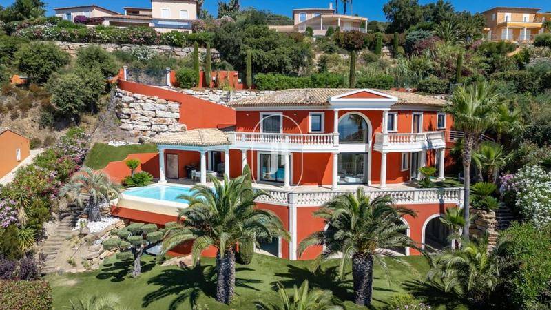 MAISONDécouvrez cette magnifique villa rénovée en 2022 dans un style néo-provençal, nichée en position dominante, offrant des vues panoramiques à couper le souffle sur la mer et tout le littoral environnant.Chaque détail de cette propriété a été pensé pour allier élégance, confort moderne et charme provençal. Entièrement transformée grâce à des rénovations d’envergure, la villa dévoile désormais de vastes espaces lumineux.L’accès à la propriété se fait par deux points distincts : en contrebas, un portail électrique s’ouvre sur un grand garage, tandis qu’en haut, un portail manuelle mène à une aire de stationnement pouvant accueillir plusieurs véhicules, facilitant ainsi l’accès direct à l’entrée principale.Avec ses sept chambres spacieuses et ses six salles de bains ou douches, la villa est idéale pour accueillir famille et amis dans un cadre luxueux. Le vaste salon, baigné de lumière naturelle, s’ouvre directement sur une grande terrasse où il fait bon vivre. Toutes les pièces de la maison offre une vue imprenable sur la mer La salle à manger, attenante à la cuisine entièrement équipée, s’ouvre sur une terrasse, parfaite pour savourer les petits-déjeuners.Cette demeure dispose d’une superbe piscine à débordement, au sel et complètement neuve avec installation technique de dernière génération, parfaite pour se détendre tout en admirant l’horizon marin.Autour de la piscine vaste terrasses avec cuisine d’été équipée en eau chaude et électricité et un boulodrome pour profiter de ce jeu typiquement Français tout en ayant une magnifique vue mer. Parfaitement équipée pour votre confort, la villa bénéficie de la climatisation réversible, d’une cave à vin pour les amateurs de grands crus, ainsi que d’une grande buanderie. Un grand garage pour mettre à abri votre voiture ou bateau de taille raisonable.Villa à vendre par l’agence immobilière Janssens immobilier de Sainte-Maxime.Les informations sur les risques auxquels ce bien est exposé sont disponibles sur le site Géorisques : (Lien supprimé)Conformément à la réglementation en vigueur, la surface DPE de ce bien est établie sur la base d’un mesurage normé de la surface habitable. Ce mesurage peut différer de la surface totale mesurée avec précision par nos équipes commerciales.