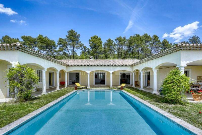 MAISONSpacieuse villa contemporaine de plain-pied en vente à Draguignan par notre agence immobilière de Sainte-Maxime.A mi-chemin entre Flayosc et Draguignan, dans un secteur résidentiel au calme, offrant une vue époustouflante jusqu’au massif des Maures et sur le village de Flayosc, très belle propriété de plain-pied à vendre sur un terrain de plusieurs hectares avec piscine.Construite en 2008, cette villa moderne offre une forme en U de type « hacienda » délivrant de larges espaces de vie.Le spacieux séjour avec cheminée se prolonge avec un coin lecture, une cuisine équipée ouvre sur une des terrasses et une buanderie se trouve à l’arrière. Un coin nuit dessert trois belles chambres avec leur salle de bains en suite et un bureau.Le grand terrain en partie boisé ainsi que les oliviers éloignent le voisinage et rendent le lieu très calme.Le très beau cadre de vie pour cette maison à vendre à Draguignan exposée plein sud ainsi que sa superbe vue sont les atouts majeurs de ce bel endroit !Maison à vendre par notre agence immobilière Janssens immobilier de Sainte-Maxime.Grâce à notre partenariat exclusif avec Knight Frank, leader mondial de l’immobilier de prestige, Janssens Immobilier offre à chaque propriété une visibilité internationale exceptionnelle. Cette alliance renforce notre expertise locale par la puissance d’un réseau présent dans plus de 50 pays.Les informations sur les risques auxquels ce bien est exposé sont disponibles sur le site Géorisques : (Lien supprimé)Conformément à la réglementation en vigueur, la surface DPE de ce bien est établie sur la base d’un mesurage normé de la surface habitable. Ce mesurage peut différer de la surface totale mesurée avec précision par nos équipes commerciales.