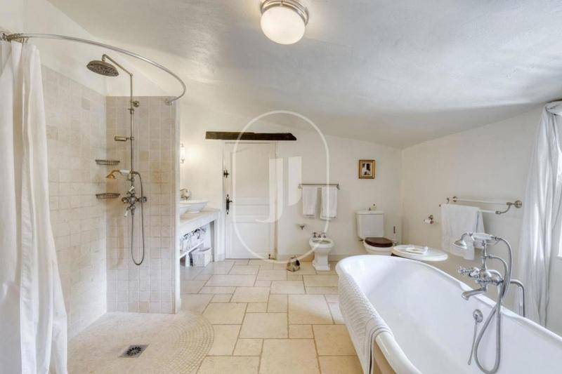 La maison se compose de 5 grandes chambres et 4 salles de bains, dont une immense suite principale avec salle de bains attenante. Elle dispose de climatiseurs réversibles dans toutes les chambres, ainsi que de 5 cheminées fonctionnelles dans diverses pièces de la bâtisse (3 poêles à bois et 2 foyers ouverts). Parmi les atouts supplémentaires, on trouve une terrasse de 100 m² environ orientée au sud, un garage avec carport dans une ancienne grange en pierre, une piscine chauffée de 11 x 5 m avec couverture électrique et une plage en pierres d'environ 400 m².