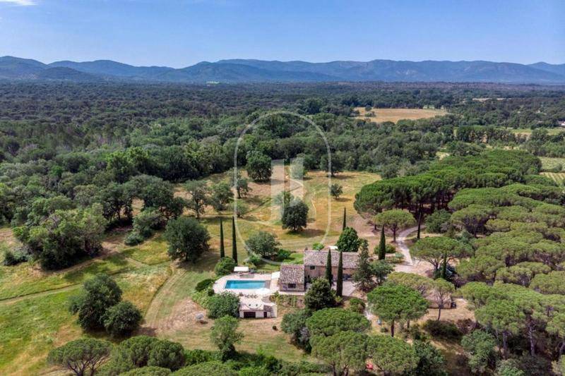 Propriété exceptionnelle d'environ 8 hectares, située en retrait de la route départementale menant à La Garde Freinet, au cœur d'une réserve naturelle protégée. Offrant une tranquillité absolue sans vis-à-vis, ce terrain enchanteur est parsemé de grands arbres, d'une belle clairière et de zones boisées, avec en son centre la partie habitation comprenant une piscine chauffée et un garage.