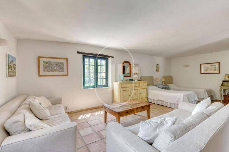 MAISONCe domaine rare à vendre près de Lorgues s’épanouit dans un écrin de nature préservée, au cœur de six hectares de parc harmonieusement paysagé. Chaque arbre, chaque sentier semble avoir été placé avec soin, offrant des vues imprenables sur les collines et paysages aux alentours. Deux villas au charme singulier s’y dressent, alliant authenticité et raffinement. La maison principale, d’environ 240 m² sur deux niveaux, séduit par sa lumière et ses matériaux nobles. Le vaste séjour de 60 m², orienté plein sud, s’ouvre sur une terrasse dominant la piscine. L’atmosphère y respire l’art de vivre méditerranéen : un insert réchauffe le salon, la cuisine au charme provençal se distingue par son évier en marbre et son four à pizza niché dans la pierre. Une pièce attenante, modulable en atelier ou salon d’hiver, complète cet espace convivial. À l’étage, une chambre avec accès terrasse et salle d’eau habillée de carreaux de Salernes signés Alain Vagh. En rez-de-jardin, trois chambres dont une somptueuse suite parentale avec double salle de bains aux teintes éclatantes. Bureau, buanderie et vaste garage de 70 m² complètent cet ensemble autant fonctionnel qu’inspirant. À l’extérieur, la piscine au sel, chauffée et équipée d’un volet solaire, invite à la détente dans un cadre paisible. Plus loin, la seconde villa d’environ 100 m², esprit loft, séduit par sa charpente culminant à plus de 4 mètres, sa cuisine ouverte, son poêle à bois et ses volets coulissants en bois brut. Deux chambres se partagent une salle d’eau, tandis qu’une échelle de meunier mène à un grenier aménageable en dortoir, idéal pour les enfants. Conçue dans ses moindres détails, la propriété allie charme et autonomie : alimentée par l’eau de ville, elle dispose aussi d’un forage de 100 mètres et d’un réservoir tampon. Le chauffage associe pompe à chaleur et insert, garantissant confort et performance énergétique. Les extérieurs complètent ce cadre d’exception : deux box à chevaux, annexes prêtes à être aménagées en chambres d’hôtes, abri bois, atelier, espace de rangement, un garage à vélos et un boulodrome.Grâce à notre partenariat exclusif avec Knight Frank, leader mondial de l’immobilier de prestige, Janssens Immobilier offre à chaque propriété une visibilité internationale exceptionnelle. Cette alliance renforce notre expertise locale par la puissance d’un réseau présent dans plus de 50 pays. Les informations sur les risques auxquels ce bien est exposé sont disponibles sur le site Géorisques : (Lien supprimé) Conformément à la réglementation en vigueur, la surface DPE de ce bien est établie sur la base d’un mesurage normé de la surface habitable. Ce mesurage peut différer de la surface totale mesurée avec précision par nos équipes commerciales.