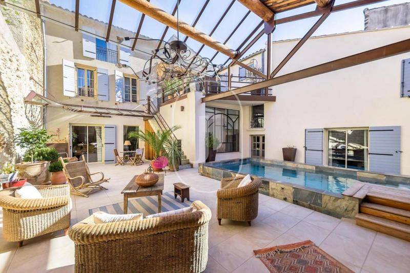 MAISONSituée dans l’un des quartiers les plus prisés de Villeneuve-lès-Avignon, cette magnifique villa, à vendre par notre agence de L’Isle-sur-la-Sorgue, est un véritable joyau alliant élégance, volumes généreux et vue imprenable sur les environs.Dès l’entrée, la villa déploie ses espaces de vie lumineux et fonctionnels :• Trois chambres, chacune avec sa salle d’eau et ses toilettes privatives• Deux cuisines, dont une arrière-cuisine pratique• Salle à manger conviviale• Salon baigné de lumière• Superbe terrasse ceinturant presque entièrement la maison, idéale pour profiter des beaux joursL’étage offre un espace nuit confortable et raffiné :• Trois chambres supplémentaires, dont deux ouvrant sur un large balcon• Salle de bains contemporaine avec douche à l’italienneLe sous-sol, pensé pour la fonctionnalité et le confort, complète cette villa exceptionnelle :• Septième chambre avec salle d’eau• Garage d’environ 40 m²• Chaufferie, deux ateliers et caveÀ l’extérieur, un cadre verdoyant et sécurisé :• Terrain clos et paysager de 2 660 m²• Piscine 12 x 6 m, offrant un espace de détente uniqueCette propriété rare, à proximité immédiate d’Avignon, de la gare TGV et de toutes commodités, se prête aussi bien à l’accueil d’une grande famille qu’à un projet de chambres d’hôtes.Un bien d’exception à découvrir sans tarder auprès de notre agence immobilière de L’Isle-sur-la-Sorgue.Les informations sur les risques auxquels ce bien est exposé sont disponibles sur le site Géorisques : www.georisques.gouv.frConformément à la réglementation en vigueur, la surface DPE de ce bien est établie sur la base d’un mesurage normé de la surface habitable. Ce mesurage peut différer de la surface totale mesurée avec précision par nos équipes commerciales.