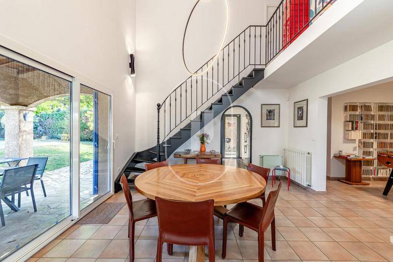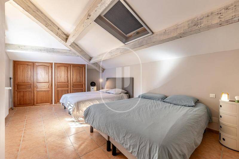 MAISONVous recherchez une somptueuse demeure haut de gamme à l’abri des regards. Nous vous proposons ce magnifique mas du début du XIXème siècle entièrement restauré, avec piscine, à vendre au cœur de la campagne de Pernes-les-Fontaines, dans un environnement calme et verdoyant.Cette propriété d’exception dispose d’un vaste jardin de plus de 6 000 m². L’habitation principale et la dépendance attenante offrent une surface de près de 405 m².À l’entrée de cette demeure, une cour ornée d’un somptueux magnolia vous accueille et constitue l’espace de parking principal, avec un double garage de 45 m². Vous accédez au mas par un premier jardin intime et luxuriant, agrémenté de fleurs et de belles plantes, qui mettent en valeur le cachet authentique de la façade.Une belle terrasse abritée d’environ 50 m² avec cheminée permet de profiter des soirées d’été à l’abri du mistral.L’entrée se fait par un hall qui distribue les espaces de vie de part et d’autre. Un sublime salon/bibliothèque occupe la partie gauche de la maison et bénéficie d’une authentique cheminée conviviale.À droite, vous trouverez une salle à manger ainsi qu’une grande cuisine lumineuse donnant sur la buanderie et un deuxième garage. Les différents accès extérieurs présents dans chaque pièce du rez-de-chaussée apportent une belle luminosité naturelle.Au palier du premier étage, une magnifique bibliothèque vous accueille, où se situe l’espace nuit de la maison. Cet étage comprend trois chambres dont une suite parentale, une salle de bain ainsi qu’une splendide suite avec son propre bureau.La dépendance attenante au mas se compose d’une grande pièce de vie avec cuisine ouverte, ainsi qu’une magnifique baie vitrée donnant sur le jardin luxuriant. L’escalier dessert deux chambres en suite, ainsi qu’une mezzanine pouvant accueillir deux lits en 90.Le jardin entoure la propriété et offre de magnifiques espaces verts, à l’abri des regards, avec une piscine de 15×5 m et sa terrasse, sans oublier un superbe verger de cerisiers, abricotiers, pruniers, pommiers et oliviers.Ce beau mas dans le Comtat Venaissin garantit une vie confortable et paisible, équipé de panneaux photovoltaïques et en partie climatisé. Une propriété idéale pour une vie de famille ou un hébergement touristique de grande qualité.Mas à vendre par l’agence immobilière de l’Isle-sur-la-Sorgue, en France.Surface de référence retenue pour le DPE : 405 m²Les informations sur les risques auxquels ce bien est exposé sont disponibles sur le site Géorisques : www.georisques.gouv.fr“Conformément à la réglementation en vigueur, la surface DPE de ce bien est établie sur la base d’un mesurage normé de la surface habitable. Ce mesurage peut différer de la surface totale mesurée avec précision par nos équipes commerciales.”