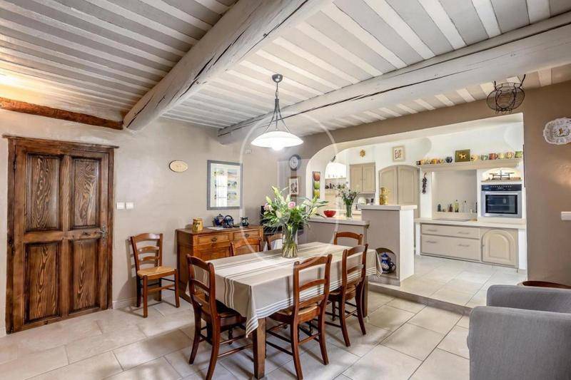 Le mas est caractérisé par ses plafonds provençaux avec ses poutres apparentes, lui conférant un charme authentique et typique de la région.
