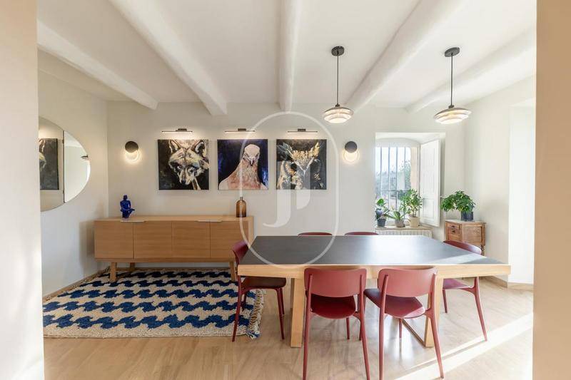 MAISONVous recherchez une somptueuse demeure haut de gamme à l’abri des regards. Nous vous proposons ce magnifique mas du début du XIXème siècle entièrement restauré, avec piscine, à vendre au cœur de la campagne de Pernes-les-Fontaines, dans un environnement calme et verdoyant.Cette propriété d’exception dispose d’un vaste jardin de plus de 6 000 m². L’habitation principale et la dépendance attenante offrent une surface de près de 405 m².À l’entrée de cette demeure, une cour ornée d’un somptueux magnolia vous accueille et constitue l’espace de parking principal, avec un double garage de 45 m². Vous accédez au mas par un premier jardin intime et luxuriant, agrémenté de fleurs et de belles plantes, qui mettent en valeur le cachet authentique de la façade.Une belle terrasse abritée d’environ 50 m² avec cheminée permet de profiter des soirées d’été à l’abri du mistral.L’entrée se fait par un hall qui distribue les espaces de vie de part et d’autre. Un sublime salon/bibliothèque occupe la partie gauche de la maison et bénéficie d’une authentique cheminée conviviale.À droite, vous trouverez une salle à manger ainsi qu’une grande cuisine lumineuse donnant sur la buanderie et un deuxième garage. Les différents accès extérieurs présents dans chaque pièce du rez-de-chaussée apportent une belle luminosité naturelle.Au palier du premier étage, une magnifique bibliothèque vous accueille, où se situe l’espace nuit de la maison. Cet étage comprend trois chambres dont une suite parentale, une salle de bain ainsi qu’une splendide suite avec son propre bureau.La dépendance attenante au mas se compose d’une grande pièce de vie avec cuisine ouverte, ainsi qu’une magnifique baie vitrée donnant sur le jardin luxuriant. L’escalier dessert deux chambres en suite, ainsi qu’une mezzanine pouvant accueillir deux lits en 90.Le jardin entoure la propriété et offre de magnifiques espaces verts, à l’abri des regards, avec une piscine de 15×5 m et sa terrasse, sans oublier un superbe verger de cerisiers, abricotiers, pruniers, pommiers et oliviers.Ce beau mas dans le Comtat Venaissin garantit une vie confortable et paisible, équipé de panneaux photovoltaïques et en partie climatisé. Une propriété idéale pour une vie de famille ou un hébergement touristique de grande qualité.Mas à vendre par l’agence immobilière de l’Isle-sur-la-Sorgue, en France.Surface de référence retenue pour le DPE : 405 m²Les informations sur les risques auxquels ce bien est exposé sont disponibles sur le site Géorisques : www.georisques.gouv.fr“Conformément à la réglementation en vigueur, la surface DPE de ce bien est établie sur la base d’un mesurage normé de la surface habitable. Ce mesurage peut différer de la surface totale mesurée avec précision par nos équipes commerciales.”