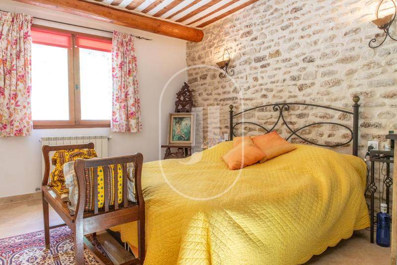 Construite en 1975 avec des matériaux de qualité, cette demeure affiche tout le charme de l'authenticité : murs doublés en pierres apparentes, plafonds provençaux, sols en pierre et travertin, le tout parfaitement entretenu. L'intérieur, d'environ 145 m² habitables, s'organise harmonieusement sur deux niveaux.