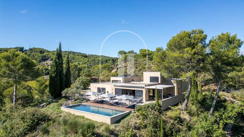 MAISONPropriété Contemporaine d’exception à vendre près de Vaison La RomaineTrès rare demeure contemporaine, à la situation tout aussi exceptionnelle, offrant un panorama unique sur la campagne environnante, les vignes et le Mont Ventoux. Nichée dans un environnement privilégié, au calme absolu et proche de Vaison-la-Romaine, cette propriété combine avec élégance design, confort et nature, sur un vaste terrain d’environ 2,5 hectares.Le rez-de-jardin, baigné de lumière grâce à de larges baies vitrées, s’ouvre sur plusieurs terrasses — ensoleillées ou ombragées — idéales pour profiter du soleil et des vues spectaculaires.L’intérieur, spacieux et harmonieux, se compose d’un vaste séjour ouvert sur la cuisine et la salle à manger, créant un espace convivial et lumineux, agrémenté de nombreux rangements intégrés.La suite parentale, raffinée et apaisante, dispose de sa salle d’eau privative et de son dressing. Deux autres chambres confortables avec salles d’eau privatives complètent ce niveau, ainsi qu’une buanderie fonctionnelle et un grand garage de près de 40 m².À l’étage, une chambre supplémentaire avec salle d’eau et WC forme un espace intime, parfait pour accueillir famille ou amis.Un studio indépendant comprenant chambre, salle d’eau et kitchenette offre un espace d’accueil autonome ou un bureau idéal pour télétravailler dans un cadre inspirant.Le jardin, paysager, abrite une grande piscine de 12 mètres de long bordée de plages en bois (bambou), une oliveraie (plus de 50 sujets), un terrain de pétanque et de larges terrasses propices à la détente et aux repas d’été.Les prestations haut de gamme incluent le double vitrage, des volets électriques à lames, des sols en béton ciré, chauffage au sol réversible par pompe à chaleur et également par climatisation réversible (Split), des panneaux photovoltaïques de 8 kW, un portail automatique, 200m d’allée privée en béton éclairée, une alarme et un vidéophone.Très abritée, exposée plein sud, cette demeure séduit par sa luminosité, sa sérénité et son architecture contemporaine parfaitement intégrée à la nature environnante.Une propriété rare et élégante, idéale pour les amoureux de lumière, d’espace et de modernité, à seulement quelques minutes du centre de Vaison-la-Romaine.Contactez-nous dès maintenant pour organiser une visite et découvrir tous les détails de cette propriété unique, cette maison est à vendre par l’agence immobilière de Vaison La Romaine.Les informations sur les risques auxquels ce bien est exposé sont disponibles sur le site Géorisques : www.georisques.gouv.frConformément à la réglementation en vigueur, la surface DPE de ce bien est établie sur la base d’un mesurage normé de la surface habitable. Ce mesurage peut différer de la surface totale mesurée avec précision par nos équipes commerciales.