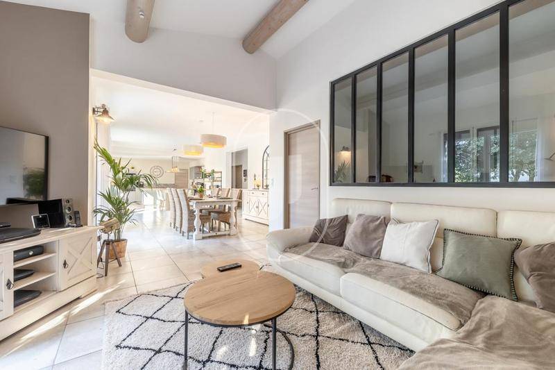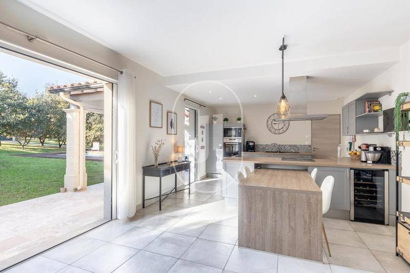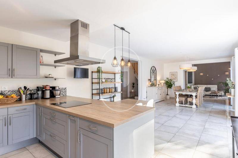 MAISONDécouvrez cette belle maison familiale à vendre près de L’Isle-sur-la-Sorgue. Située dans un environnement calme et verdoyant, elle offre environ 205 m² et de nombreuses prestations de qualité. Ce bien unique est entouré d’un terrain arboré approximativement de 4 873 m².Au rez-de-chaussée, une grande pièce de vie baignée de lumière naturelle vous accueille grâce à de grandes baies vitrées. Elle se compose d’un salon, d’une salle à manger avec cuisine ouverte entièrement équipée, d’une buanderie, d’un bureau, d’un hall, d’un WC indépendant. Ce niveau est complété par un bureau et une chambre avec salle d’eau privative. À l’étage, vous trouverez une chambre parentale avec dressing, deux chambres confortables qui se partage un dressing, une salle de bain, et un WC supplémentaire, offrant des espaces parfaits pour toute la famille.Ce bien offre également une dépendance avec une cuisine équipée et un espace de vie, une chambre avec salle d’eau et un WC indépendant. Cette annexe climatisée est idéale pour accueillir des invités ou envisager un projet locatif. L’extérieur de la propriété ne manquera pas de vous séduire : une terrasse couverte et carrelée permet de profiter des belles journées ensoleillées. Le terrain arboré, comprenant de nombreux chênes, offre un cadre naturel paisible. La piscine avec plage en bois est un atout majeur pour se détendre en été. De plus, un espace de parking est disponible pour plusieurs véhicules.La maison propose des prestations haut de gamme avec une cuisine moderne, un chauffage au sol rafraîchissant au rez-de-chaussée, des convecteurs à l’étage, une climatisation réversible dans la dépendance et un système d’alimentation en eau de ville. Les huisseries en aluminium avec double vitrage ajoutent confort et isolation.Cette maison à vendre est située au calme, tout en étant à proximité des commerces et des commodités dans un cadre de vie serein en Provence.Surface de référence retenue pour le DPE : 205 m²Pour organiser une visite et obtenir plus d’informations, contactez dès maintenant notre agence immobilière à L’Isle sur la Sorgue. Les informations sur les risques auxquels ce bien est exposé sont disponibles sur le site Géorisques : www.georisques.gouv.fr.