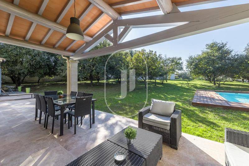 MAISONPropriété contemporaine, nichée au cœur d’un environnement naturel d’exception à Venasque, à vendre par notre agence de L’Isle‑sur‑la‑Sorgue..À l’abri des regards, dans un écrin de chênes centenaires, cette élégante demeure contemporaine conjugue harmonieusement confort moderne et douceur de vivre provençale. Cette propriété bénéficie d’un cadre rare, où la nature compose le décor quotidien : lumière changeante, senteurs boisées, silence ponctué par le chant des cigales. L’atmosphère y est paisible, tout en restant à proximité immédiate des commodités.Un intérieur spacieux et parfaitement penséDéveloppant environ 250 m² , cette maison à vendre à Venasque propose des espaces lumineux aux proportions généreuses. Le séjour de 63 m² constitue le cœur de la maison : un vaste espace de réception ouvert et chaleureux. La cuisine indépendante, entièrement équipée, allie fonctionnalité et convivialité.L’espace nuit accueille 7 chambres dont deux suites parentales. 4 salles de bains modernes complètent l’ensemble, permettant une organisation fluide au quotidien.Côté équipements, la propriété bénéficie d’un chauffage au sol par pompe à chaleur, d’une production d’eau chaude solaire, d’une cheminée pour les soirées d’hiver et d’un système domotique permettant la gestion à distance. Aspiration centralisée, salle de sport équipée et sauna viennent enrichir le niveau de prestations.Extérieurs & art de vivre en ProvenceLe parc arboré enveloppe la maison d’un sentiment rare de liberté. La piscine de 8,5 x 5,5 mètres invite à la détente durant les longues journées estivales. Les espaces extérieurs offrent de multiples possibilités : repas à l’ombre des chênes, moments de lecture au calme, instants partagés en famille dans un cadre naturel préservé.Les atouts extérieurs :Terrain boisé de 1,5 hectarePiscine généreuse et espaces de détenteEnvironnement calme sans isolementCette maison à vendre en Provence séduit par :Son terrain boisé de 1,5 hectare offrant intimité et sérénitéSes volumes généreux parfaitement adaptés à une grande familleSes prestations complètes dédiées au confort et au bien-êtreVivre à VenasqueClassé parmi les plus beaux villages du Vaucluse, Venasque séduit par son patrimoine, ses ruelles pittoresques et son authenticité. On y trouve commerces de proximité, marchés locaux et une véritable vie de village, idéale aussi bien pour une résidence principale que secondaire.Cette propriété de standing à vendre à Venasque offre une installation immédiate dans un cadre rare. Résidence principale, maison secondaire ou projet d’accueil, elle incarne une opportunité précieuse sur le marché immobilier provençal. Un lieu où confort, nature et élégance composent une adresse confidentielle. Le prix de vente s’entend hors mobilier, certains éléments pouvant toutefois être proposés à l’acquisition.Les informations sur les risques auxquels ce bien est exposé sont disponibles sur le site Géorisques : www.georisques.gouv.fr“Conformément à la réglementation en vigueur, la surface DPE de ce bien est établie sur la base d’un mesurage normé de la surface habitable. Ce mesurage peut différer de la surface totale mesurée avec précision par nos équipes commerciales.Grâce à notre partenariat exclusif avec Knight Frank, leader mondial de l’immobilier de prestige, Janssens Immobilier offre à chaque propriété une visibilité internationale exceptionnelle. Cette alliance renforce notre expertise locale par la puissance d’un réseau présent dans plus de 50 pays.
