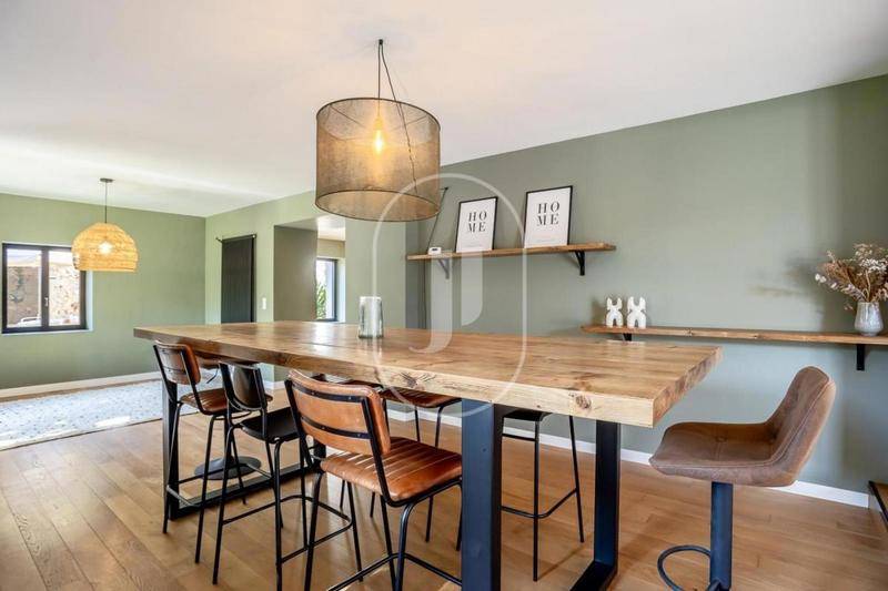 MAISONVilla contemporaine à vendre à Vaison-la-Romaine avec piscineVilla construite en 2020 de 169.97m2 , située dans un quartier calme et recherché de Vaison-la-Romaine, offrant une jolie vue sur le Mont Ventoux.Le rez-de-chaussée comprend une vaste pièce de vie lumineuse avec salon, salle à manger et cuisine ouverte entièrement équipée, le tout prolongé par de grandes baies vitrées donnant sur la terrasse et le jardin. Une suite parentale spacieuse avec dressing, salle d’eau et accès direct à l’extérieur complète ce niveau.À l’étage, quatre chambres confortables, un bureau et une salle d’eau offrent un espace idéal pour une famille ou pour recevoir des invités.À l’extérieur, la piscine carrelée de 10 x 4 m devient le cœur de la propriété, entourée d’une grande terrasse ensoleillée et d’un jardin paysager de 879 m², soigneusement aménagé pour la détente et la convivialité.Une annexe indépendante avec jardin privatif offre un espace supplémentaire, idéal pour recevoir ou pour un usage professionnel.Les prestations sont modernes et de qualité : climatisation réversible gainable, ballon thermodynamique, double vitrage, visiophone, portail électrique, garage.L’ensemble est en parfait état et ne nécessite aucun travaux. Une propriété récente, fonctionnelle et élégante, alliant confort, luminosité et prestations contemporaines, à seulement quelques minutes du centre de Vaison-la-Romaine.Ce bien est à la vente dans votre agence immobilière à Vaison-la-Romaine pour plus d’informations.Les informations sur les risques auxquels ce bien est exposé sont disponibles sur le site Géorisques : (Lien supprimé). Conformément à la réglementation en vigueur, la surface DPE de ce bien est établie sur la base d’un mesurage normé de la surface habitable, pouvant différer de la surface totale mesurée avec précision par nos équipes commerciales.