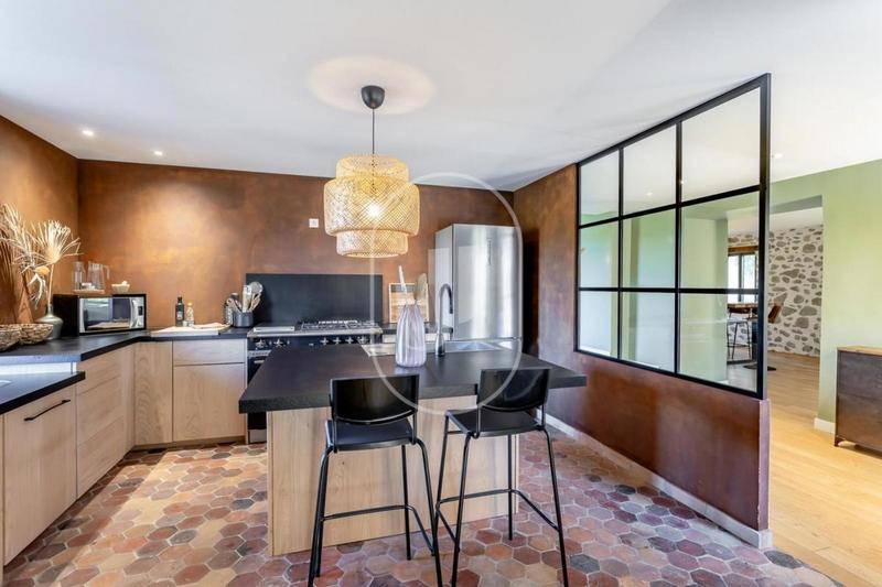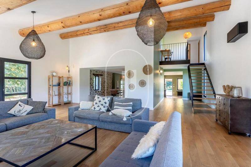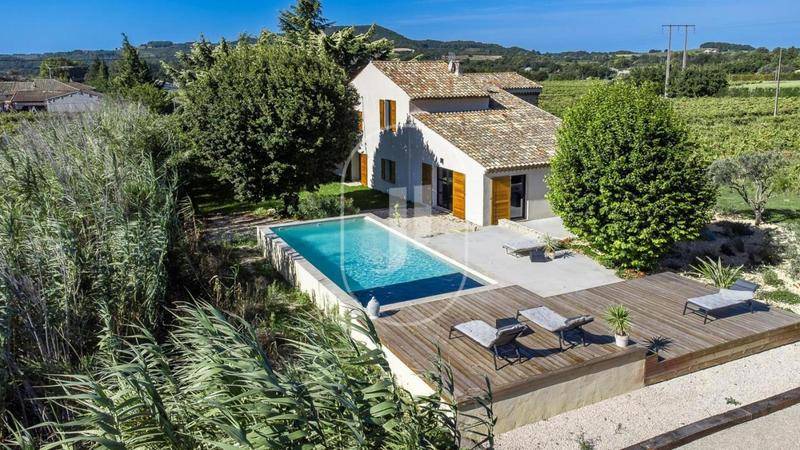 MAISONPropriété à vendre à Vaison-la-Romaine, composée d’un rare cabanon provençal de caractère en pierre, agrandi avec une extension contemporaine d’une grande élégance sur un beau terrain de 1,6 hectaresNichée dans un environnement privilégié, en pleine campagne et au calme absolu, cette demeure se trouve à proximité immédiate du centre de Vaison-la-Romaine et d’un village réputé.Ce lieu unique conjugue à merveille l’authenticité provençale et la modernité raffinée, dans une atmosphère intime et apaisante.Le rez-de-jardin, baigné de lumière grâce à de larges baies à galandage, s’articule autour d’un vaste salon contemporain avec cheminée insert et éclairage “ciel étoilé”, ouvert sur une grande terrasse ensoleillée propice à la détente. La cuisine spacieuse et la salle à manger, à la hauteur sous plafond remarquable, forment un bel espace convivial idéal pour recevoir. Une suite parentale élégante avec salle d’eau, dressing et accès direct au jardin complète ce niveau.Les espaces techniques — buanderie, rangements et local technique — apportent un grand confort au quotidien. Deux ateliers attenants, dotés d’un chauffage au sol par pompe à chaleur, offrent un potentiel d’aménagement supplémentaire et pourraient être reliés à la partie principale.À l’étage, deux chambres avec salles d’eau privatives créent des espaces indépendants et confortables, dont l’une avec un accès extérieur, idéale pour accueillir famille ou amis.Le jardin paysager, vaste et soigneusement entretenu, abrite une superbe piscine Diffazur (5 x 12,5 m) équipée du système Diffaclean, un poolhouse de 25 m² ainsi qu’un local technique neuf avec pompe et cellule au sel récemment remplacées. Un espace de rangement pour le matériel de jardin complète l’ensemble.La propriété bénéficie de prestations modernes : double vitrage, volets coulissants, chauffage au sol et climatisation réversible, installation électrique en triphasé, fibre optique et prises RJ45 dans chaque pièce. Très abritée, lumineuse et située en fond d’impasse, cette maison offre un cadre de vie exceptionnel, alliant charme provençal, confort contemporain et intimité totale.Une demeure rare et élégante, parfaite pour les amoureux de nature, de tranquillité et d’architecture raffinée, à seulement quelques minutes des commerces et de la vie animée de Vaison-la-Romaine.Les informations sur les risques auxquels ce bien est exposé sont disponibles sur le site Géorisques : (Lien supprimé).Conformément à la réglementation en vigueur, la surface DPE de ce bien est établie sur la base d’un mesurage normé de la surface habitable, pouvant différer de la surface totale mesurée avec précision par nos équipes commerciales