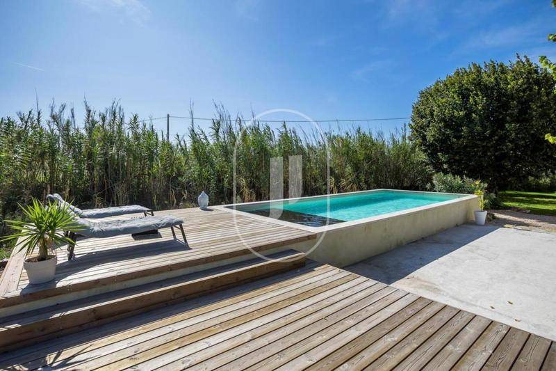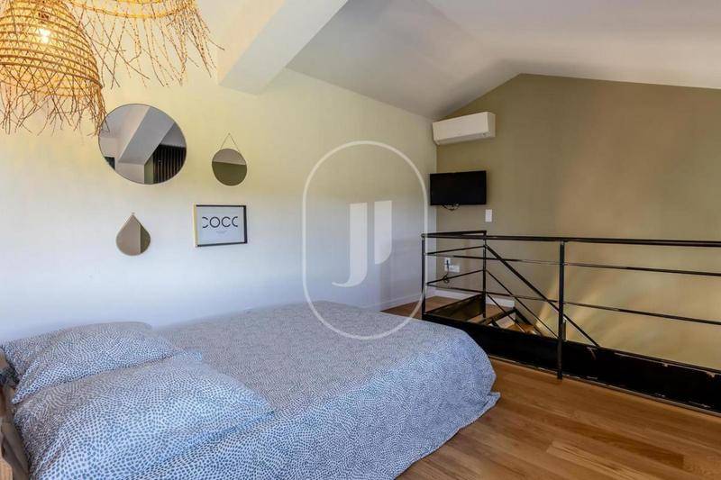 Le rez-de-jardin se compose avec une entrée, une cuisine équipée, une salle à manger, un salon, un espace bureau, une salle de bain, tous sublimés par des matériaux de grande qualité tels que les sols en terres cuites et le parquet en chêne. À l'étage, on retrouve quatre chambres, une salle de bain, un dressing, un bureau et l'accès à une terrasse tropézienne.