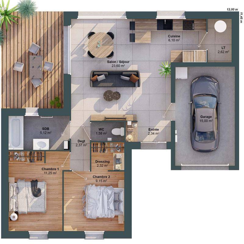 Maison neuve à construire SEQUOIA_2CH_67_V1