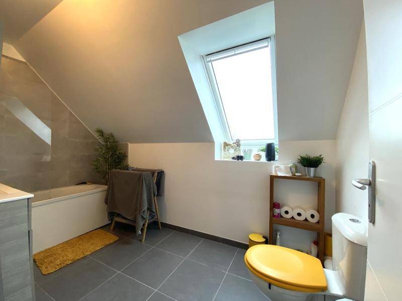 MAISONExelia Rosny-sur-Seine vous propose, à Rosny-sur-Seine, cette maison mitoyenne édifiée en 1967, développant une surface habitable de 90,79 m² répartie sur trois niveaux, et bénéficiant d’un agréable jardin clos avec terrasse.Au rez-de-chaussée, l’entrée dessert une belle pièce de vie traversante, lumineuse et conviviale, comprenant un salon avec poêle à pelés et un espace salle à manger ouvert sur une cuisine aménagée et équipée. Cet espace bénéficie d’un accès direct à la terrasse et au jardin, offrant une véritable continuité entre intérieur et extérieur. Un toilette indépendant complète ce niveau.À l’étage, le palier distribue trois chambres de belle dimension, ainsi qu’une salle d’eau moderne . Un dernier niveau sous combles accueille une quatrième chambre mansardée, idéale pour un espace nuit supplémentaire ou un bureau selon les besoins.Le bien dispose également d’une cave totale pour le stockage, ainsi qu’un emplacement de stationnement privatif (box ). La maison est équipée d’un chauffage individuel au gaz et d’une production d’eau chaude individuelle gaz, de menuiseries en double vitrage, ainsi que de la fibre optique.Située au cœur d’une résidence de 25 lots à la gestion bénévole, cette maison s’inscrit dans un environnement calme et résidentiel, à proximité immédiate des écoles, des commerces, de la gare de Rosny-sur-Seine (ligne J) et des axes principaux.Taxe foncière annuelle : 1 400 €. Référence du bien : ZESJ8909.Les informations sur les risques auxquels ce bien est exposé sont disponibles sur le site www.georisques.gouv.fr