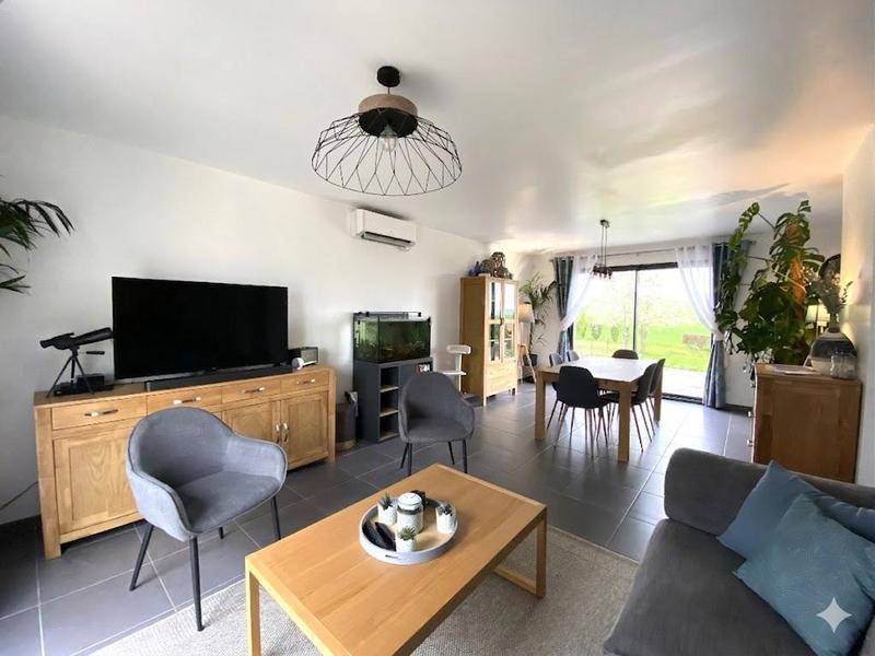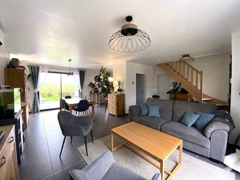 MAISONExelia Rosny-sur-Seine vous propose, sur la commune de Gommecourt, cette maison individuelle contemporaine de 2019 (RT2012) développant une surface habitable de 102,36 m² et édifiée sur une parcelle verdoyante de 748 m². Ce bien propose des volumes fonctionnels dans un environnement paisible et dégagé.Dès l’entrée, un séjour traversant de 38 m², lumineux grâce à ses multiples ouvertures sur l’extérieur, accueille l’espace salon et la salle à manger. La cuisine ouverte, aménagée et équipée, prolonge harmonieusement la pièce de vie, favorisant la convivialité au quotidien. Ce niveau bénéficie également d’une chambre, d’une salle d’eau, d’un WC indépendant et d’une buanderie.À l’étage, le palier Bureau dessert trois chambres supplémentaires, ainsi qu’une salle de bains avec WC, assurant un espace nuit confortable pour chaque occupant.À l’extérieur, le jardin clôturé de 748 m² offre un véritable cadre de verdure, idéal pour profiter des beaux jours.Ce bien récent propose des prestations qui garantissent confort et efficacité énergétique : double vitrage, VMC, climatisation réversible dans la pièce à vivre, chauffage et production d’eau chaude individuels électriques (Ballon thermodynamique), ainsi que la fibre optique pour un accès haut débit. Classe énergétique : A.Située à proximité des écoles et des principales commodités du village, cette maison bénéficie d’un accès facile vers les axes routiers vers Mantes-la-Jolie et Vernon. Taxe foncière : 1 342 € par an. Référence du bien : LRRH9177.Les informations sur les risques auxquels ce bien est exposé sont disponibles sur le site www.georisques.gouv.fr