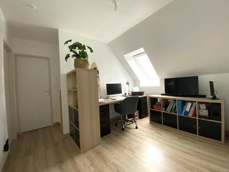 À l'étage, le palier Bureau dessert trois chambres supplémentaires, ainsi qu'une salle de bains avec WC, assurant un espace nuit confortable pour chaque occupant.