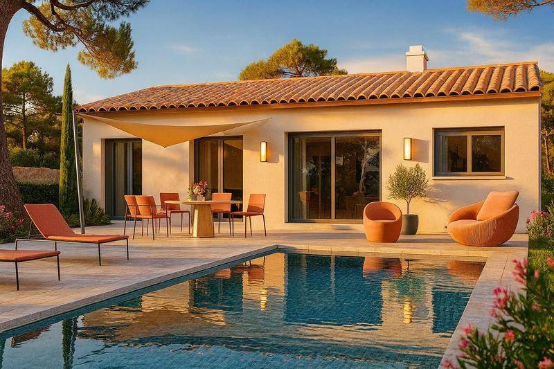 TERRAIN ET MAISONDécouvrez cette maison neuve jumelée de 70 m², exposée sud-est, située dans un environnement calme et verdoyant, à seulement 150 m de la mairie.Au sein d’une petite copropriété de 6 logements, elle offre une superbe vue dégagée et un cadre de vie très agréable.Agencement :Rez-de-chaussée : entrée, deux chambres avec placards intégrés, deux salles d’eau, WC séparé et balcon.Rez-de-jardin : vaste séjour lumineux avec espace cuisine (à aménager), WC.Un sous-sol aménageable d’environ 40 m² complète ce bien, offrant de multiples possibilités (atelier, rangement, espace de loisirs…).Jardinet privatif de plain-pied avec le séjour.Prestations :Chauffage par climatisation réversible.Deux places de stationnement privativesConstruction neuve, matériaux de qualité, belles finitionsFaibles charges de copropriétéTout à l’égoutAtouts majeurs :Calme, proximité des commodités, luminosité, vue dégagée, potentiel d’aménagement supplémentaire avec le sous-sol.Bien éligible au PTZCette annonce référence 306572 vous est présentée par votre agent commercial BSK Immobilier VIRGINIE HUMEAU-BOUCHERAT (EIRL) immatriculé au RSAC de DRAGUIGNAN (83300) sous le numéro 821(Numéro supprimé)4.Prix du bien : 340 000,00 €Les honoraires d’agence sont à la charge du vendeur.A propos de la copropriété :Pas de procédure en cours.Nombre de lots : 6Charges prévisionnelles annuelles : 70,00 €A propos des performances énergétiques :Date de réalisation du diagnostic énergétique : 15/03/2023Score DPE : 103 kWhEP/m²/anScore GES : 3 kgepCO2/m²/anMontant estimé des dépenses annuelles d’énergie pour un usage standard : entre 490.00 € et 710.00 € par an. Prix moyens des énergies indexés sur l’année 2021 (abonnements compris).Les informations sur les risques auxquels ce bien est exposé sont disponibles sur le site Géorisques : www.georisques.gouv.fr