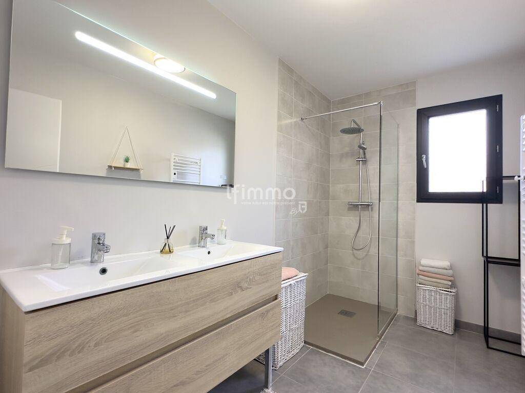 MAISONIdéalement située à deux pas des établissements scolaires, cette maison contemporaine de 2018 offre un cadre de vie moderne, lumineux et parfaitement équipé.Un bien rare, prêt à vivre, alliant confort, esthétisme et haute performance énergétique.▸ 119 m² habitables – Terrain 307 m² – 3 chambres + bureau – Piscine & garageL’entrée de près de 11 m² dessert une superbe pièce de vie de plus de 46 m², largement ouverte vers l’extérieur grâce à ses baies vitrées exposées plein sud. Salon, salle à manger et cuisine se prolongent naturellement vers une terrasse carrelée de 40 m² et un jardin paysager entièrement pensé pour le confort..À l’extérieur, tout a été pensé pour le plaisir et la facilité d’entretien : Pergola 40 m² Abri de jardin carrelé Arrosage automatique + gazon synthétique Piscine au sel 3×6 m avec pompe à chaleur et traitement automatiséUn véritable espace de vie à part entière pour profiter pleinement des beaux jours.AgencementRez-de-chaussée :• Spacieuse pièce de vie 46 m² très lumineuse• Cellier/bureau 9,7 m² avec baie vitrée• Chambre avec salle d’eau privative• Accès direct terrasse & jardinÀ l’étage :• 2 chambres (11,6 m²) avec placards aménagés• Salle de bains + WC• Rangements supplémentaires dans l’entréeDépendances & stationnement• Garage carrelé et isolé de 12 m²• Double stationnement avec portail aluminium motorisé (4,50 m)Prestations haut de gamme• Maison RT 2012 – DPE A• Climatisation + pompe à chaleur dans chaque pièce• Ballon thermodynamique De Dietrich• Menuiseries aluminium, volets roulants motorisés (pilotables à distance)• Alarme installée• Finitions soignées : carrelage 75×75, portes Righini, poignées inox, cloisons phoniques• Clôtures maçonnées 1,80 m – aucun vis-à-vis, intimité totaleContact & visite privéeMarie Sylvestre (EI)Tél. : (Numéro supprimé)RSAC Perpignan 415 257 906 Informations risques : disponibles sur le site Géorisques.