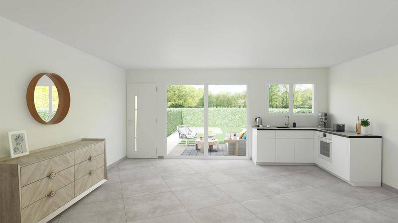 Cette maison neuve de 81 m², à construire, se compose d’une belle pièce de vie lumineuse avec salon et cuisine ouverte, offrant un espace convivial et fonctionnel.