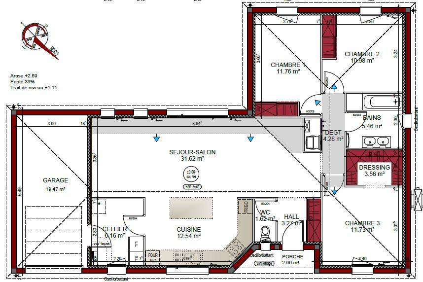 IGC construction vous propose une maison familiale de 103 m2 comprenant 3 chambres, un dressing, une pièce de vie traversante de plus de 44 m2, une salle de bain et un WC séparé. Cette construction dispose également d'un profond garage.