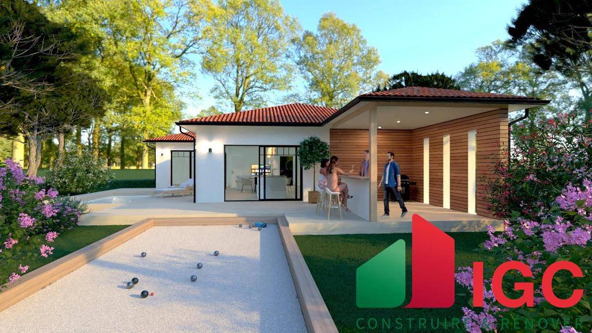 TERRAIN ET MAISONProjet de construction entièrement personnalisable proposé par IGC – Agence de La Teste-de-Buch, constructeur de maisons individuelles depuis plus de 40 ans, reconnu pour son savoir-faire, la qualité de ses matériaux et son engagement en faveur de l’innovation. Située dans un secteur calme et arboré de Gujan-Mestras, cette maison s’implante sur un terrain plat, viabilisé, de 800 m², offrant une orientation plein sud. Surface habitable de 170 m², pièce de vie lumineuse de 65 m² avec de grandes ouvertures, 4 chambres dont une suite parentale, 1 bureau, 2 WC, belle terrasse couverte, emprise au sol de 200 m². Maison conforme aux dernières normes environnementales, particulièrement économique et confortable en toutes saisons grâce à son système de chauffage réversible. Projet modifiable sur mesure avec accompagnement personnalisé. Étude gratuite et conseils sur rendez-vous.