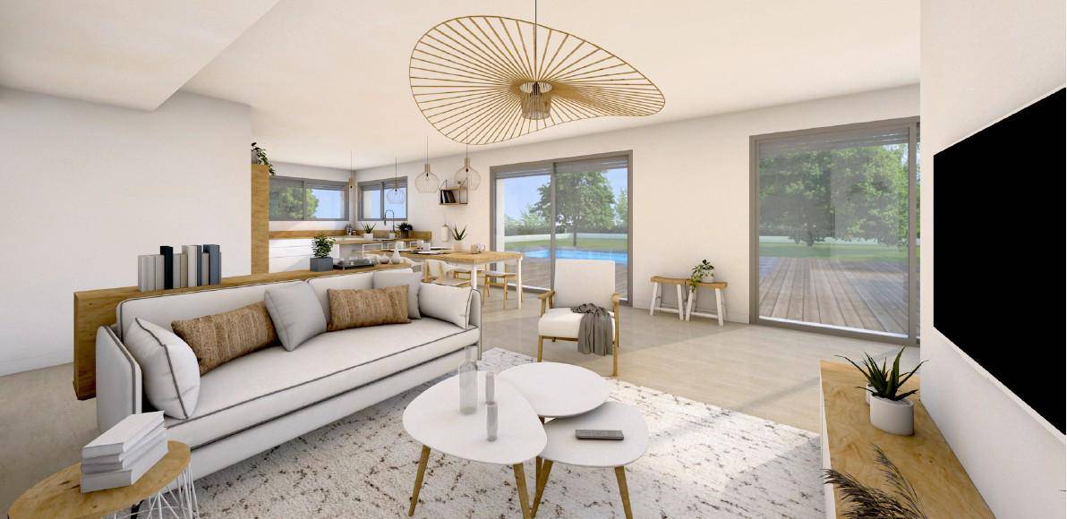TERRAIN ET MAISONCestas, entre le collège Cantelande et la gare de Gazinet. Et si vous nous confiiez la construction de votre maison sur mesure ? Dans cet exemple vous trouverez une maison IGC de plain-pied sur une agréable parcelle viabilisée de 700 m2. Belle pièce de vie lumineuse de 60 m2 qui donne sur le jardin, suite parentale avec tout le confort nécessaire, 3 chambres de 12 m2, un grand cellier et un garage de 20 m2. Profitez d’une maison aux dernières normes thermiques (DPE A), de nombreuses et grandes baies vitrées au seuils encastrés, d’un système de chauffage réversible, du pilotage par domotique et de beaux carreaux de carrelage de 1 mètre sur 1 mètre. Vous pouvez contacter Pierre-Henri BROSSEAU, agence IGC-Construction de Gradignan, pour un projet entièrement sur mesure.