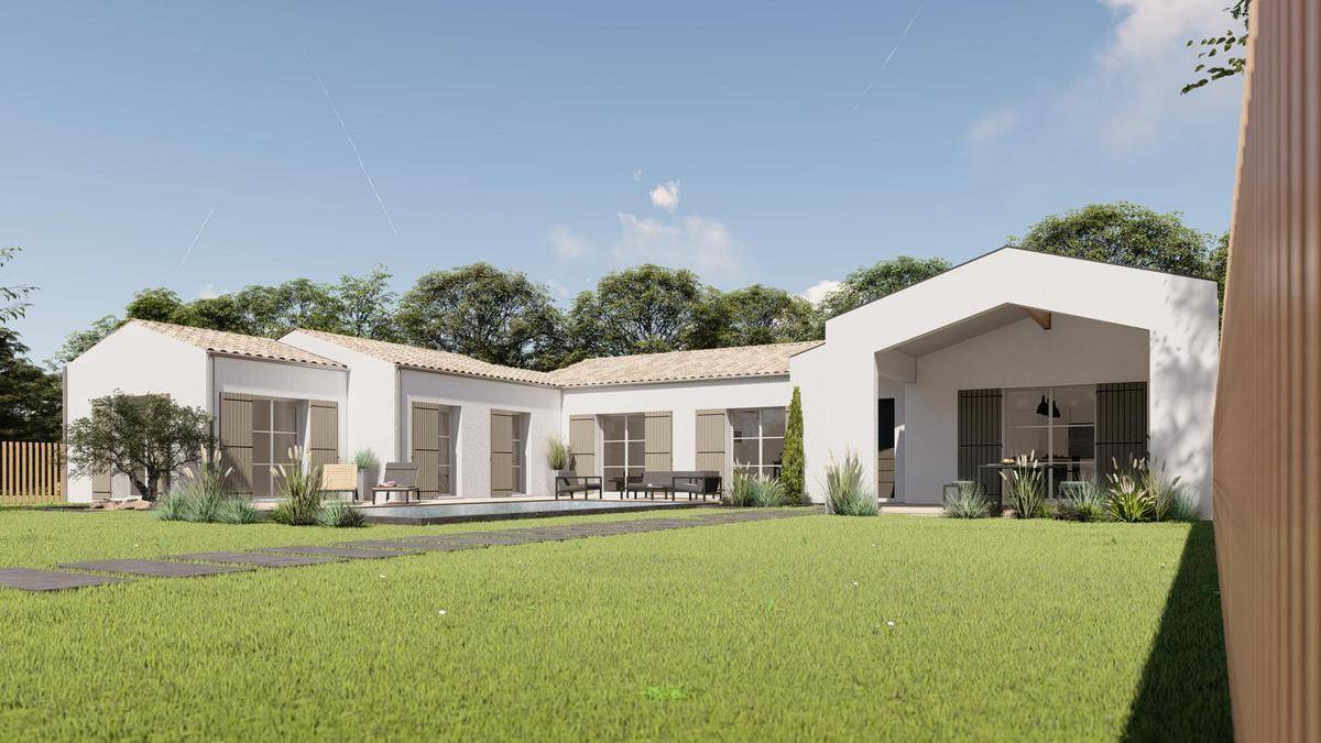 TERRAIN ET MAISONSur une belle parcelle boisée, IGC vous propose une maison d’architecture atypique, absolument design. Elle se distingue par son toit plat très légèrement incliné qui lui donne des airs de villa californienne très 70’s. Le bardage en bois brûlé encadrant la terrasse et le porche d’entrée apporte un aspect chaleureux et ultra contemporain à la maison tandis qu’un enduit matricé confère un rendu rétro-moderne à l’ensemble.D’une surface habitable de 110 m², cette maison contemporaine est dotée de belles ouvertures, comme ces baies vitrées toute hauteur dans le salon. La pièce aux volumes généreux bénéficie ainsi d’une hauteur sous plafond de 3,20m procurant un réel sentiment d’espace et de bien-être, avec une vue exceptionnelle sur les extérieurs.LUMEA se décompose en deux espaces bien distincts, afin de préserver le confort et l’intimité de chacun des occupants. Elle dispose également : d’un salon séjour avec une cuisine ouverte, d’un bureau de 6 m² idéal pour le télétravail, de 2 chambres de 11 m²,d’une salle de bain spacieuse et d’une suite parentale avec dressing et salle d’eau.La rocade de Bordeaux est à seulement 12 minutes et les commerces sont accessibles à pied!Conforme à la RE 2020, elle est équipée des dernières technologies en termes de chauffage et de domotique vous assurant un confort optimal été comme hiver. Maison prête à décorer. Frais de viabilisation et de raccordement compris.