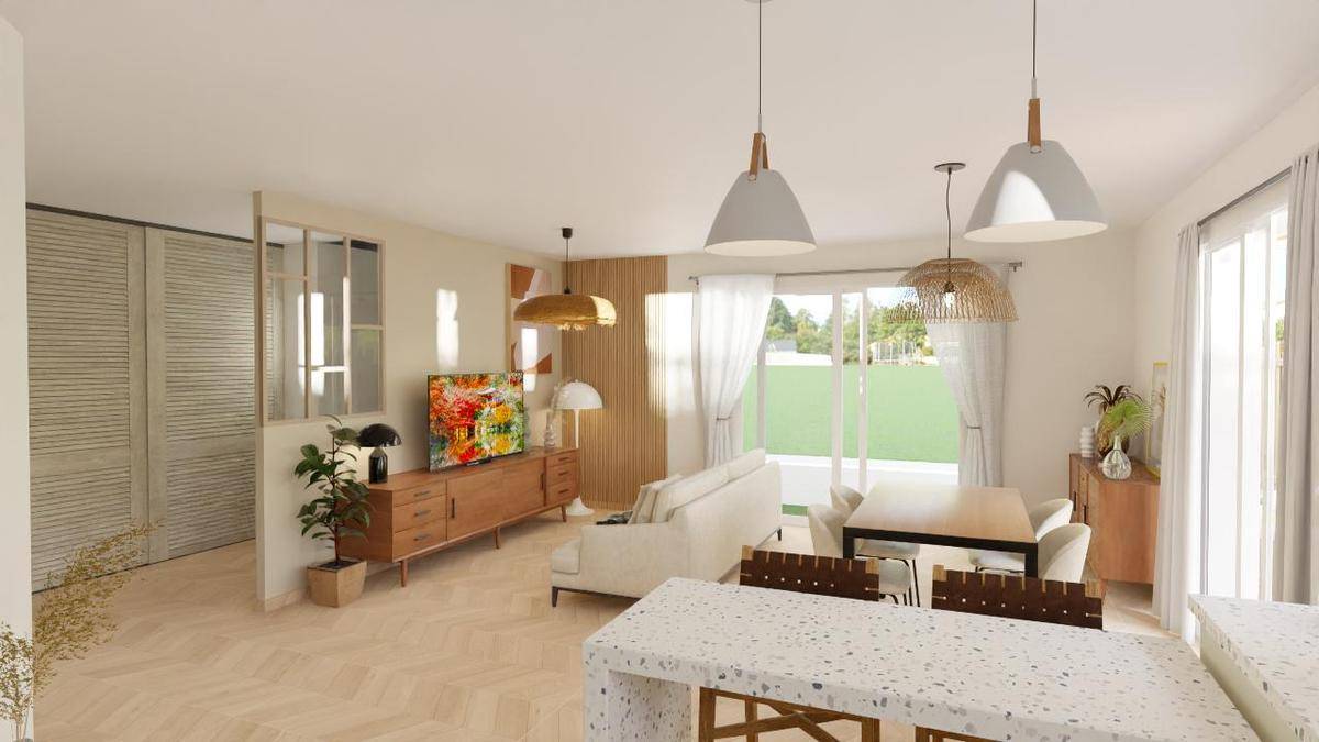 Pour vous inspirer, nous vous proposons notre modèle "Nova", ce joli plain-pied esthétique fonctionnel mais également spacieux. Equipée de trois chambres, dont une avec dressing. Elle dispose également d’un cellier, d’espaces de rangements et d’un bureau. Cette maison plain pied dispose d’une pièce de vie de plus de 40m². Le séjour est traversant et doté d’une grande baie vitrée qui donne sur l’extérieur. Modèle modulable par excellence, venez découvrir ses volumes et personnaliser ce projet ou créer le votre en agence !